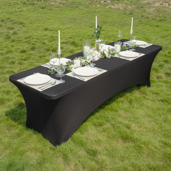 These spandex tablecloths can be washed in a washing machine or spot cleaned to simplify the cleaning process. The blend of polyester and spandex makes it easy to remove spills to maintain a clean and neat table.