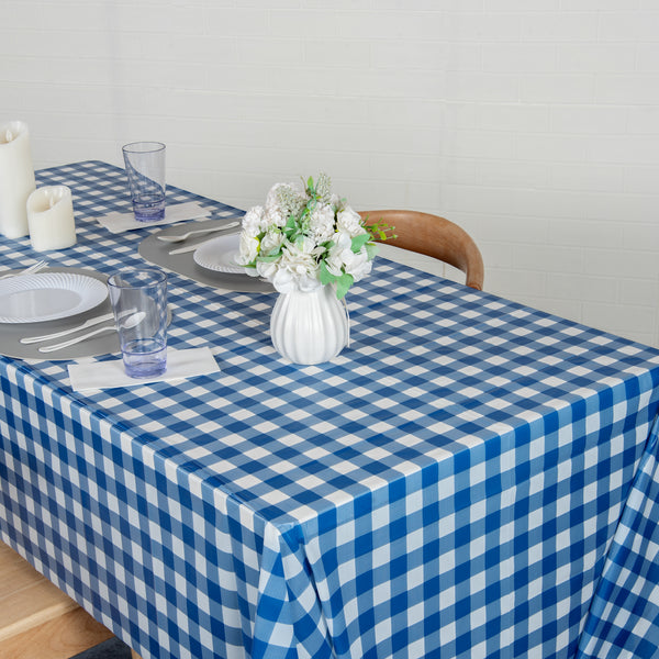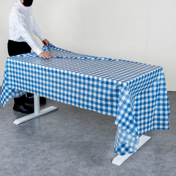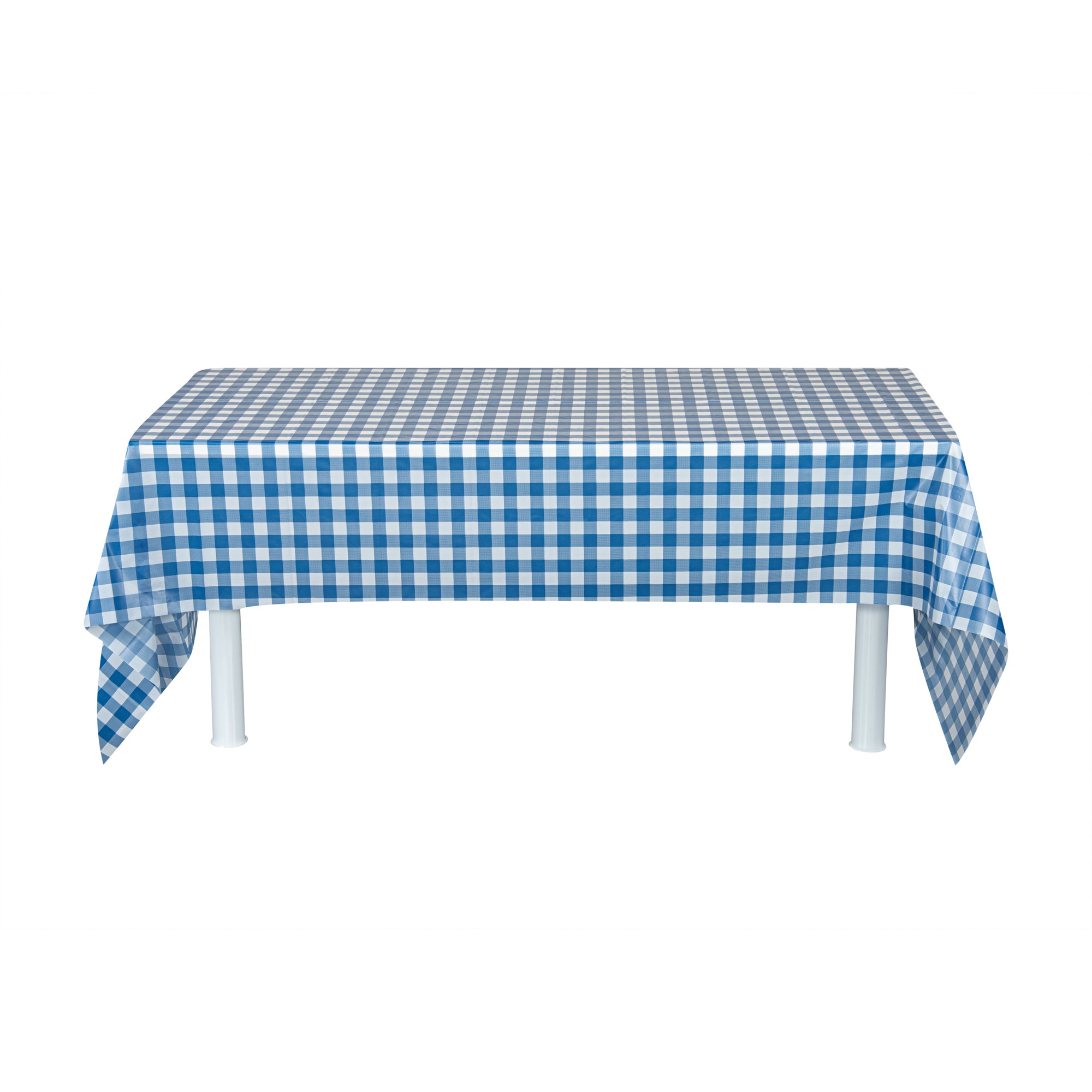 RECTANGLE BLUE GINGHAM PLASTIC TABLE COVER