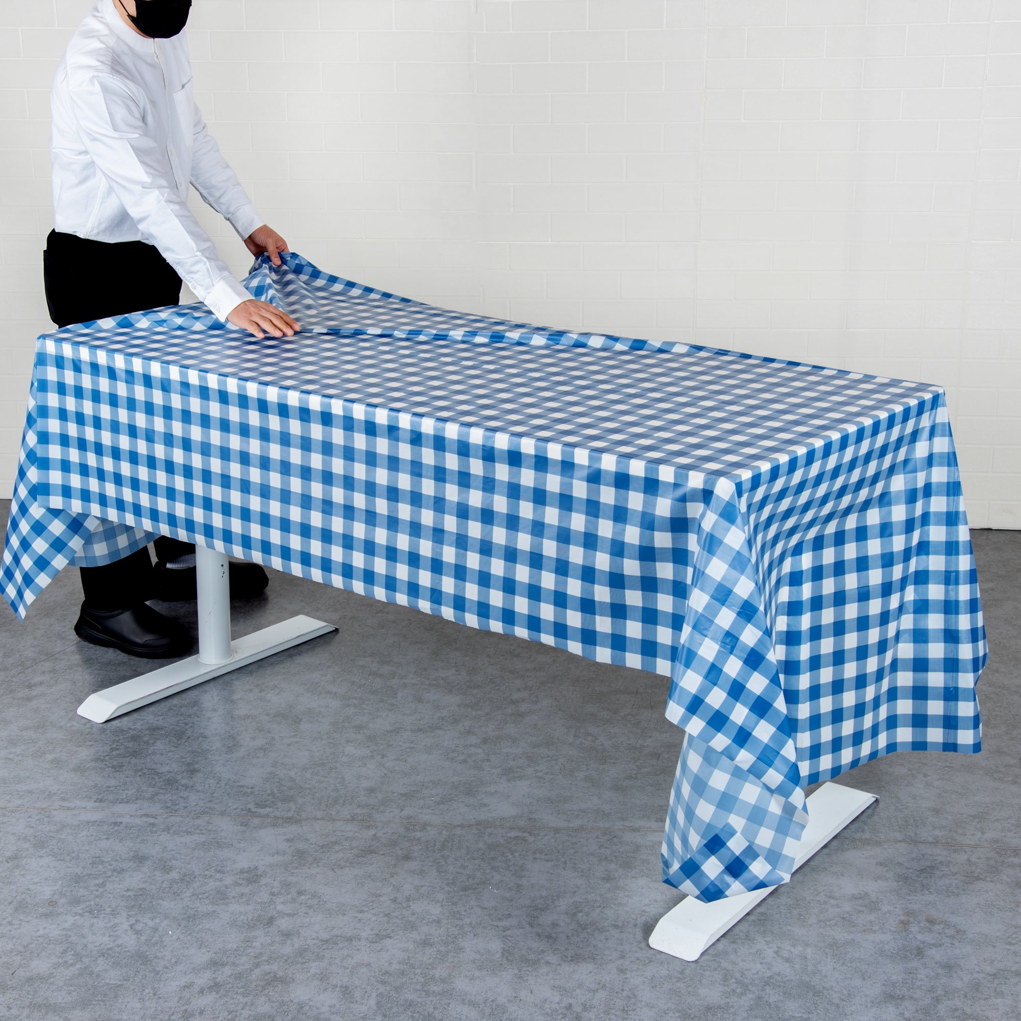 Upgrade your event decor with our Table Tek Rectangle Gingham Blue Plastic Table Covers. Featuring a blue gingham print, these plastic table covers instantly enhance the aesthetic of any indoor or outdoor gathering. Waterproof and wrinkle-resistant, these disposable table covers provide a streamlined solution for all kinds of events, ensuring easy cleanup after the festivities. Designed for durability, these blue gingham table covers are also perfect for catering businesses and restaurants that require reliable protection for their tables. With dimensions of 108 inches in length by 54 inches in width, these rectangle waterproof table covers can accommodate a variety of table sizes and shapes. Whether you're hosting a backyard barbecue or a large-scale catering event, these versatile and stylish table covers are an ideal choice for any occasion. Sold in a 2 count box.