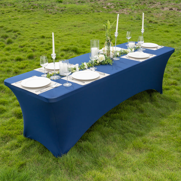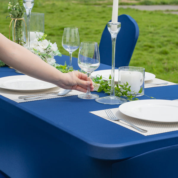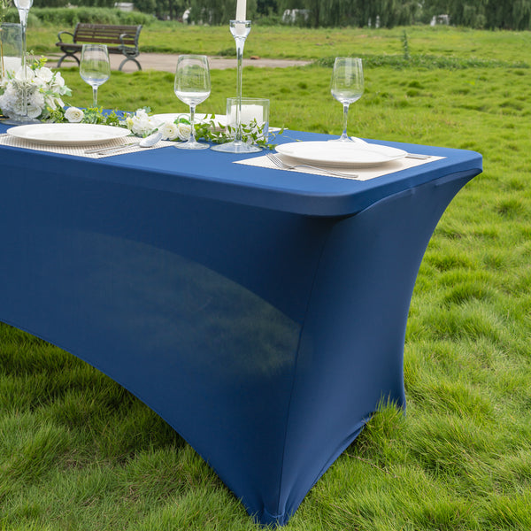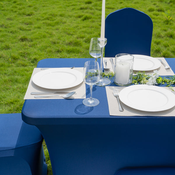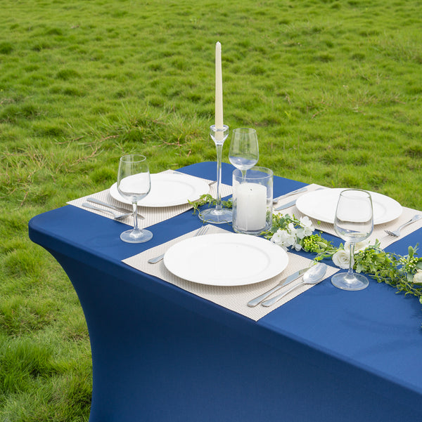These spandex tablecloths can be washed in a washing machine or spot cleaned to simplify the cleaning process. The blend of polyester and spandex makes it easy to remove spills to maintain a clean and neat table.