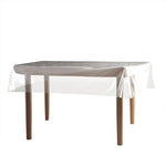 Drape on a protective layer for your tabletops with our Table Tek Rectangle Clear Plastic Tablecloth Cover. Crafted from high-quality plastic, this recyclable clear table cover is inherently waterproof, stain-resistant, and non-slip. This 6-mil plastic tablecloth effortlessly protects your dining tables from accidental spills and unsightly messes. With a high-clarity design, this clear vinyl table cover effectively preserves the quality of your attractive tablecloth while seamlessly displaying its beauty. This plastic table cover is ideal for outside or indoor events at your restaurant, banquet hall, hotel, and more. Smooth any existing creases by laying a damp towel over them and then using a blow dryer on a low setting to remove wrinkles. Let it cool down before use. Measuring 72 inches long by 54 inches wide, this durable clear vinyl tablecloth is perfect for catering businesses. Shipped in a 1 count box.