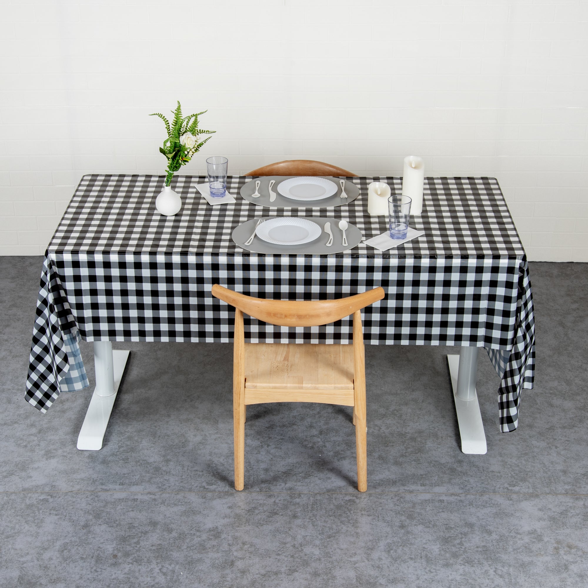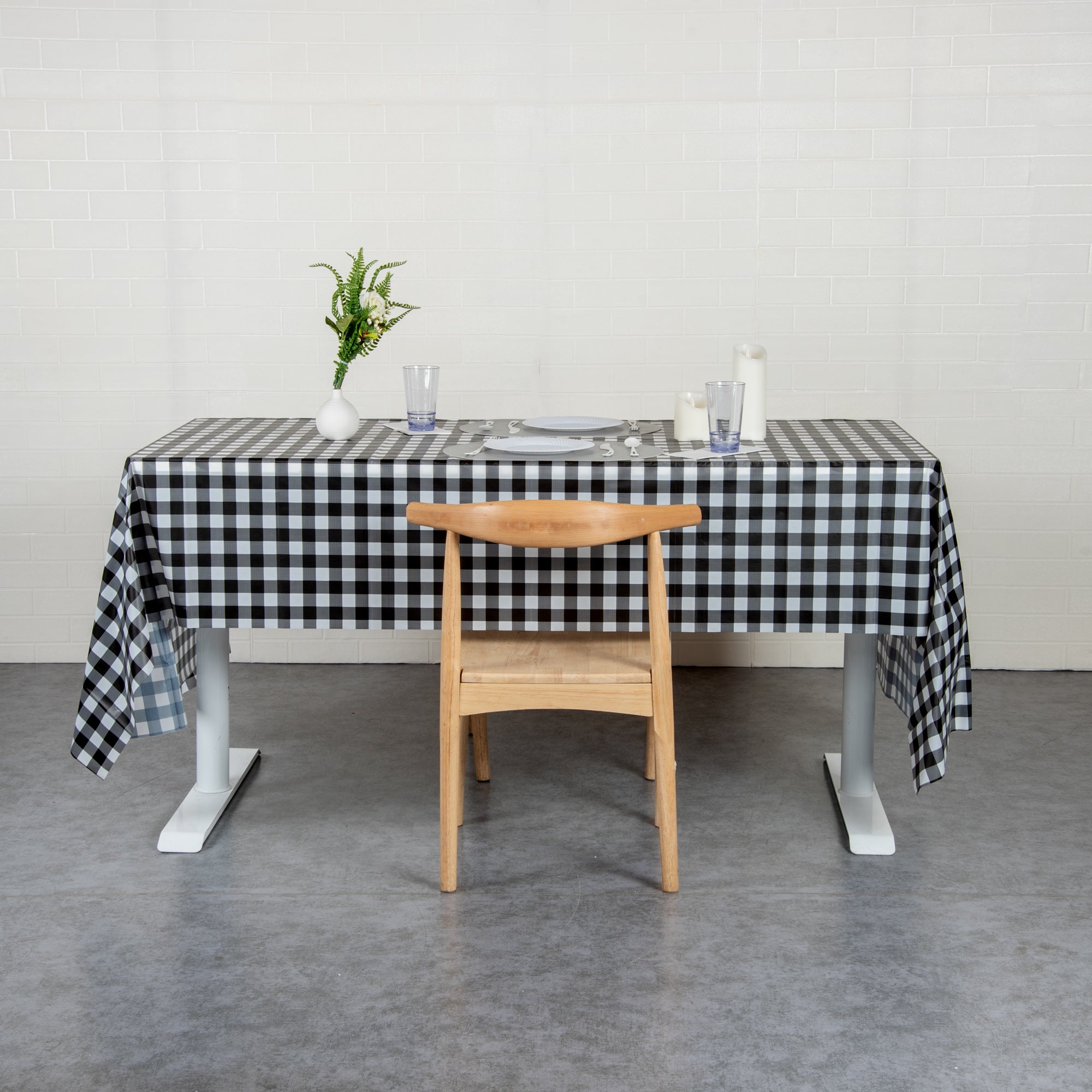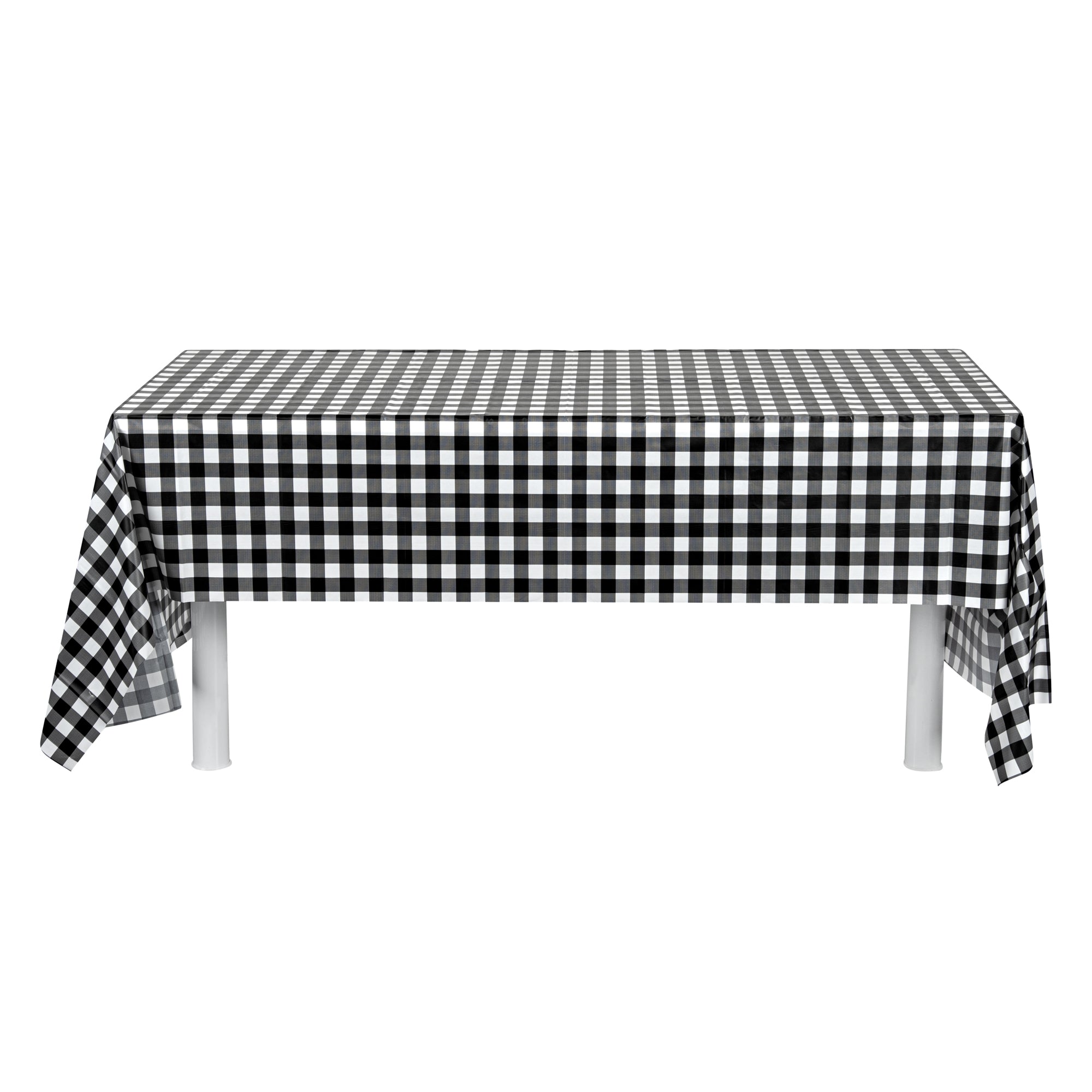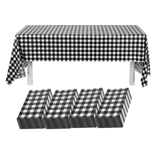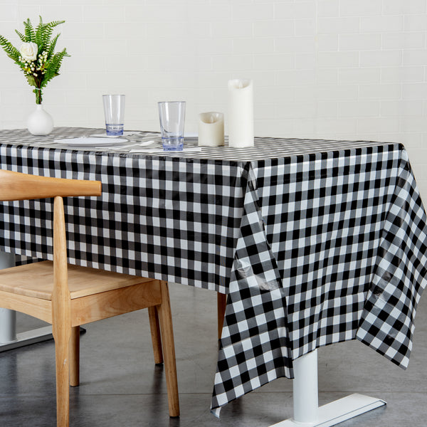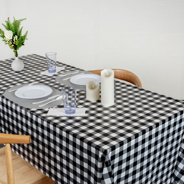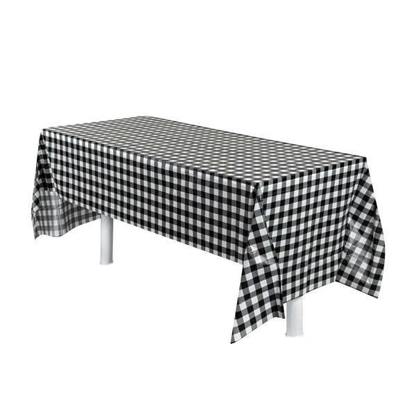 RECTANGLE GINGHAM BLACK PLASTIC TABLE COVER
