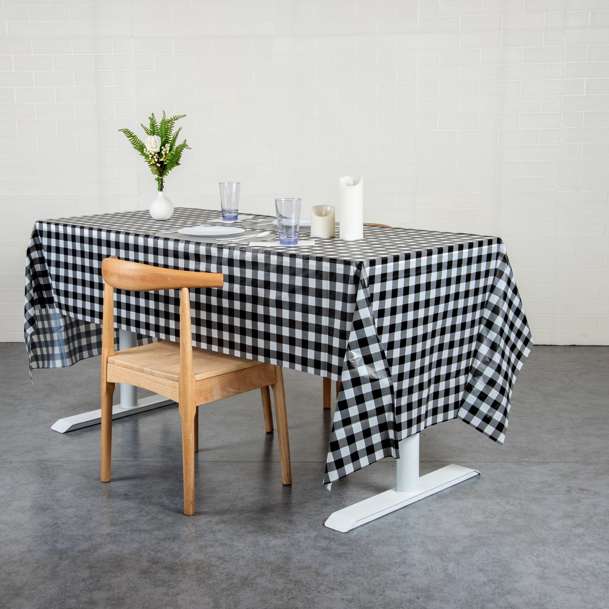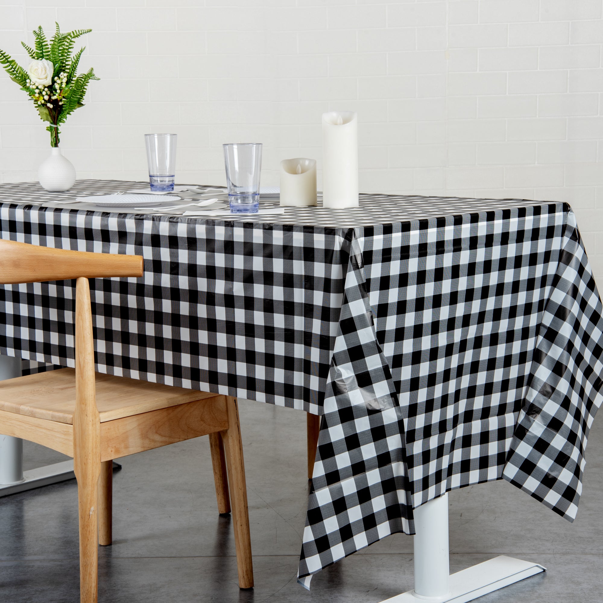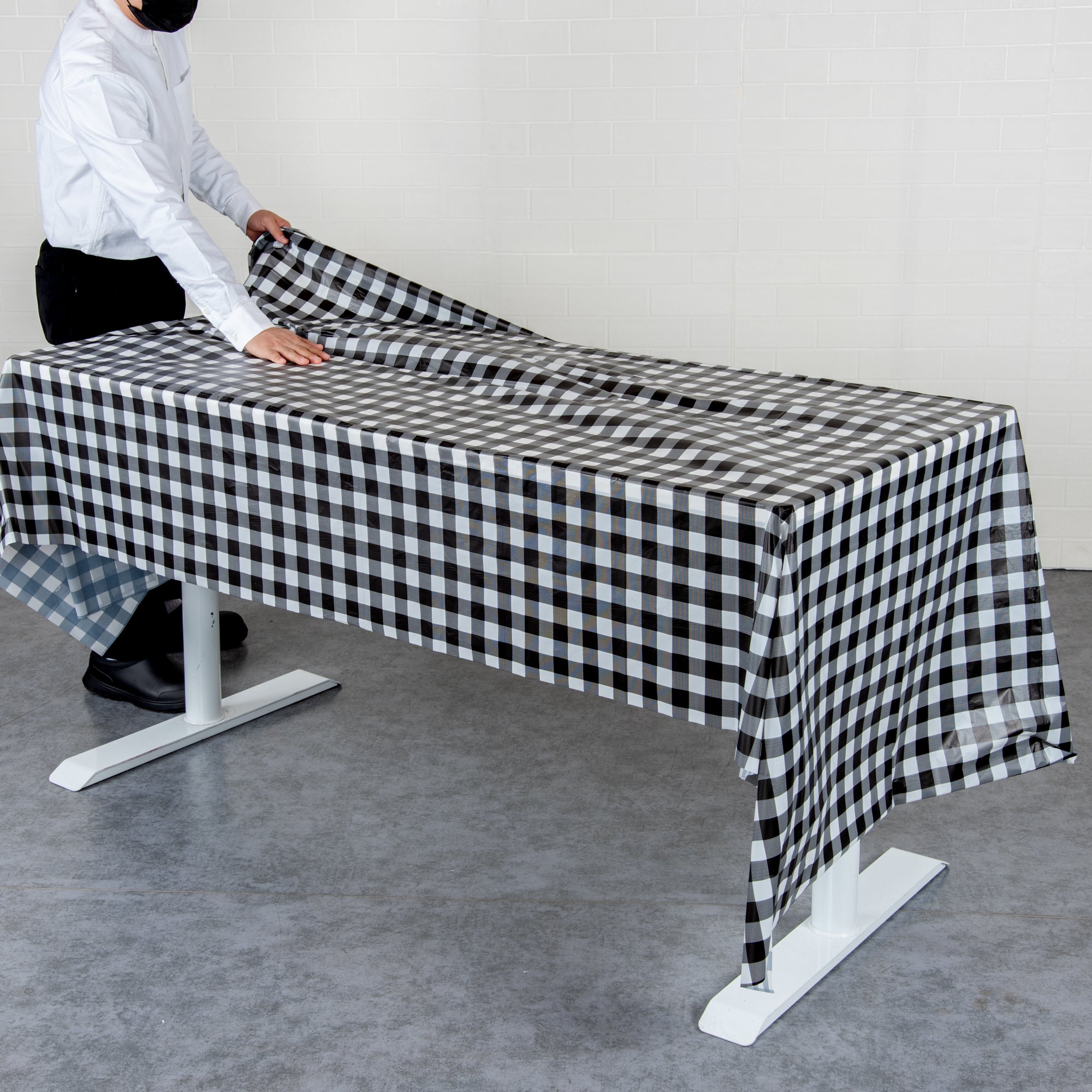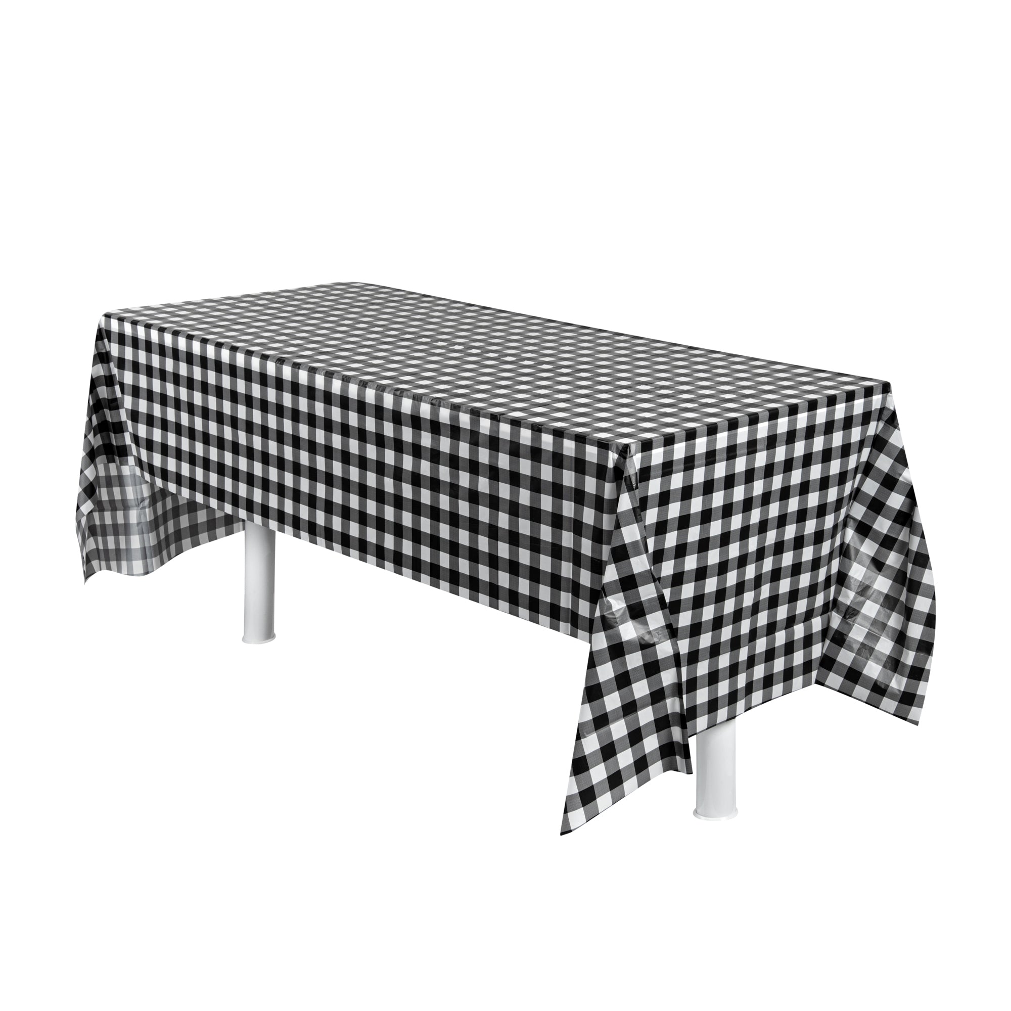 Make an impression at your next event with our Table Tek Rectangle black Gingham Plastic Table Covers. These table covers, boasting a unique black gingham print, add a touch of charm to any setting while providing a clean, consistent look. Made from durable and waterproof plastic, these disposable table covers are designed to protect your tables from spills and messes, ensuring an easy clean-up after your event. These table covers are the epitome of convenience and style, with their wrinkle-resistant feature making them ideal for both indoor and outdoor uses. With dimensions measuring 108 inches in length by 54 inches in width, these waterproof table covers offer ample coverage for a variety of table sizes, proving to be an ideal choice for all kinds of events. Sold in a 20 count box.