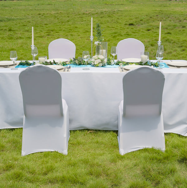 RECTANGLE WHITE POLYESTER CLOTH TABLE COVER - HEMMED