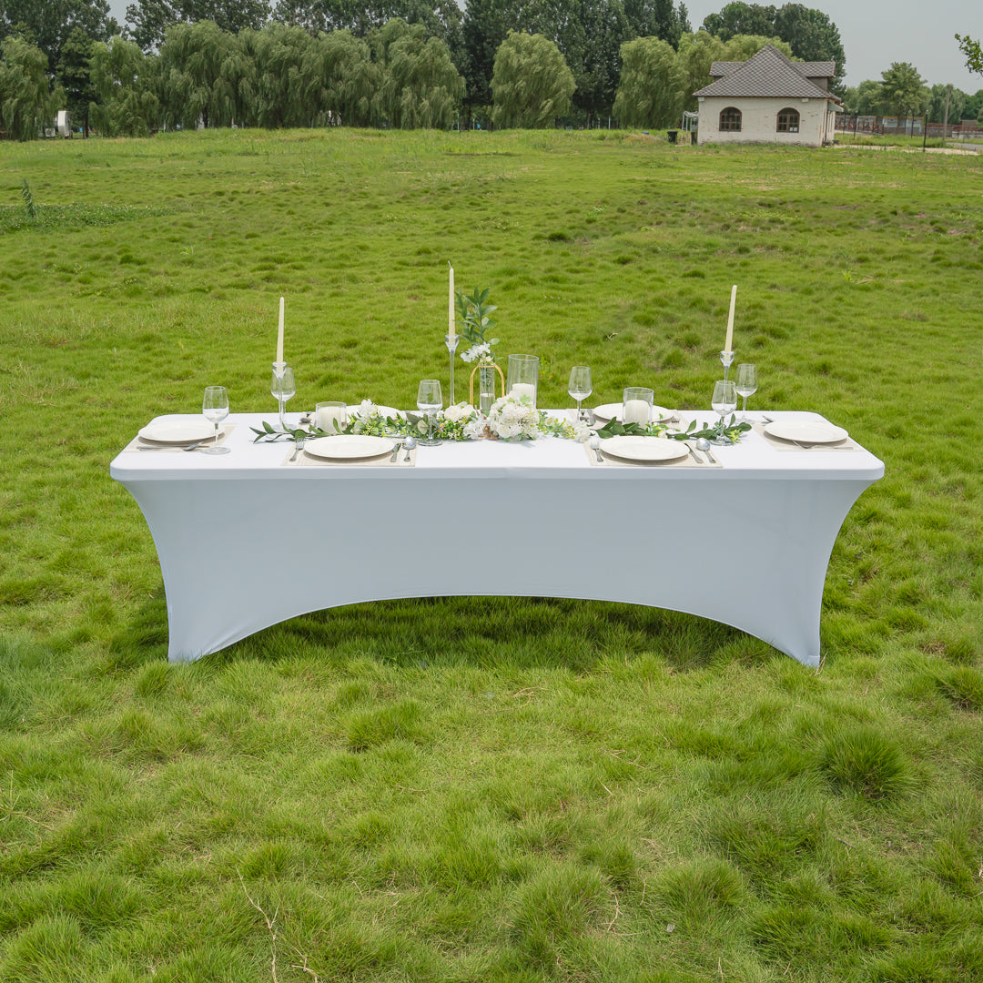 Made from a stretchable fabric, these spandex table covers stretch to fit various table shapes and sizes. Provides exceptional stretchability to conform to even unconventional table shapes unlike standard tablecloths.