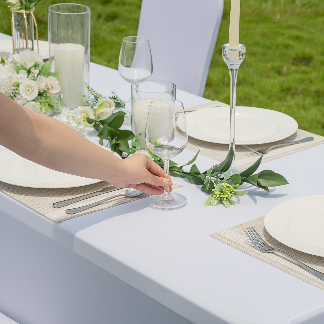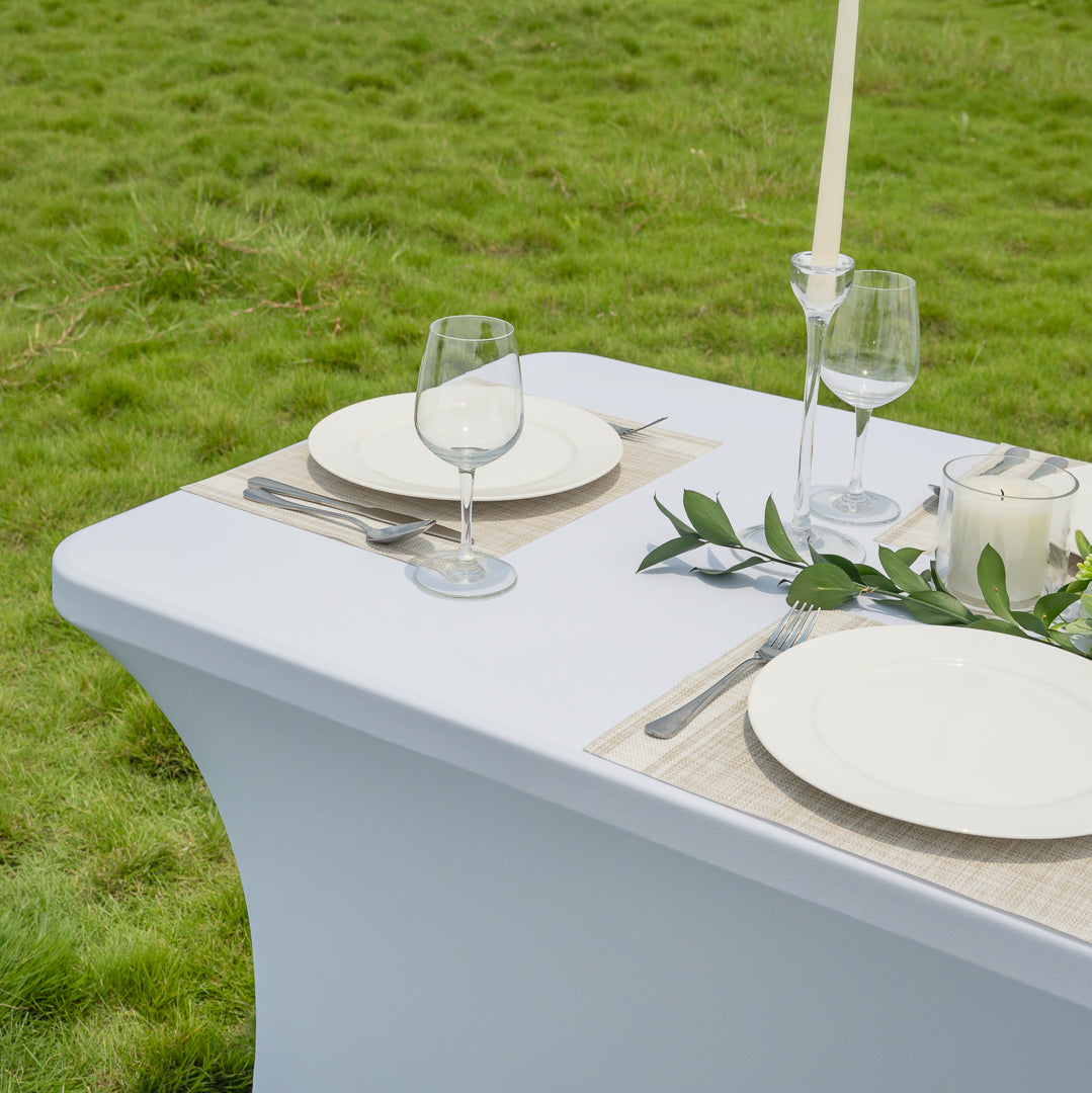 These spandex tablecloths can be washed in a washing machine or spot cleaned to simplify the cleaning process. The blend of polyester and spandex makes it easy to remove spills to maintain a clean and neat table.