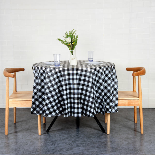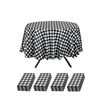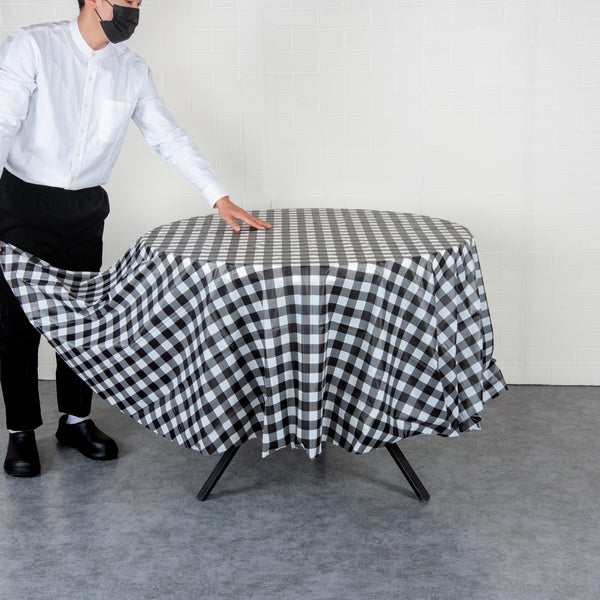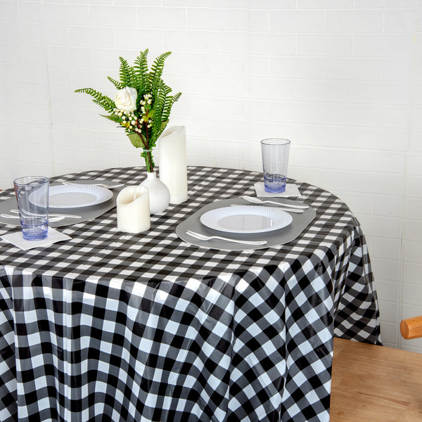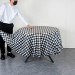 ROUND GINGHAM BLACK PLASTIC TABLE COVER