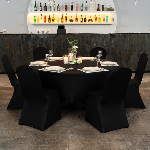 Made from a stretchable fabric, these spandex table covers stretch to fit various table shapes and sizes. Provides exceptional stretchability to conform to even unconventional table shapes unlike standard tablecloths.
