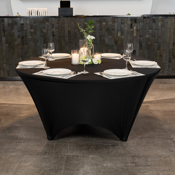 ROUND BLACK SPANDEX TABLE COVER - CONTOUR CUT
