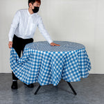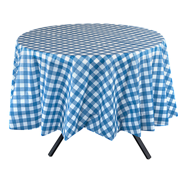 ROUND BLUE GINGHAM PLASTIC TABLE COVER