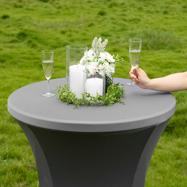 ROUND CHARCOAL GRAY SPANDEX TABLE COVER - BAR HEIGHT