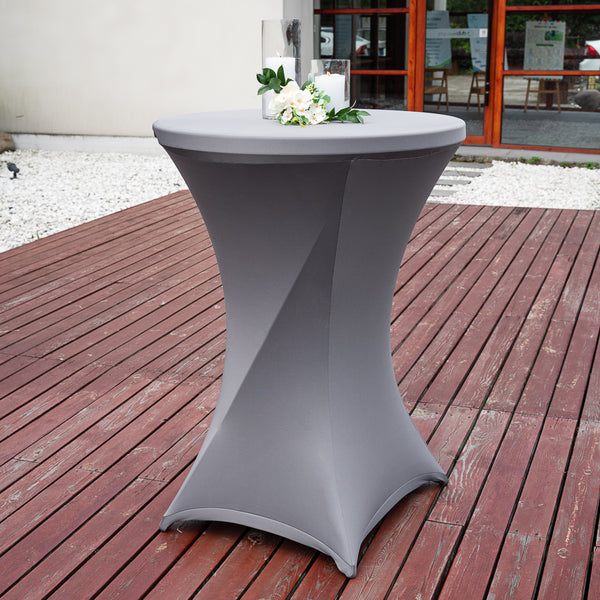 ROUND GRAY SPANDEX TABLE COVER - BAR HEIGHT