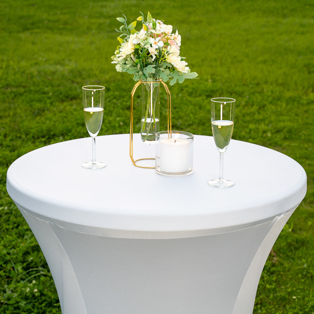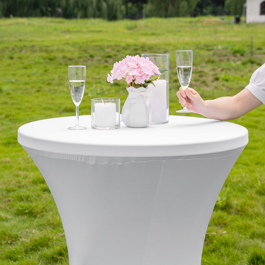 ROUND WHITE SPANDEX TABLE COVER - BAR HEIGHT