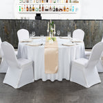 Stylishly set tables using our Table Tek Sand Satin Table Runners. These sand table runners are made from premium polyester and feature a seamless one-piece design that makes setting tables easy. The satin weave and sand finish of these runners for tables bring elegance to tablescapes at your restaurant or catered event. These neutral table runners are machine-washable in the gentle cycle with cold water so that you can quickly clean runners. To help keep them withoutwrinkles, these sand table runners can be tumble-dried using a medium heat setting. Perfect for decorating dining tables of all sizes, these runners for tables measure 108 inches in length and 12 inches in width. Do not use bleach on these table runners to keep their appearance looking new. Sold in a 10 count box.