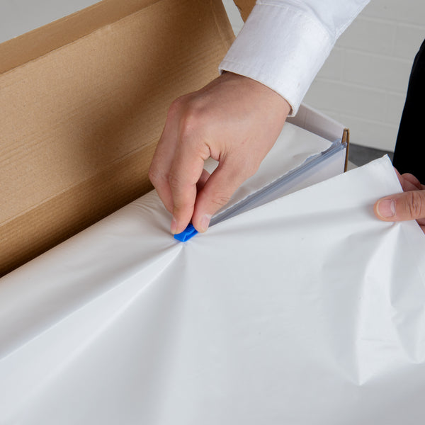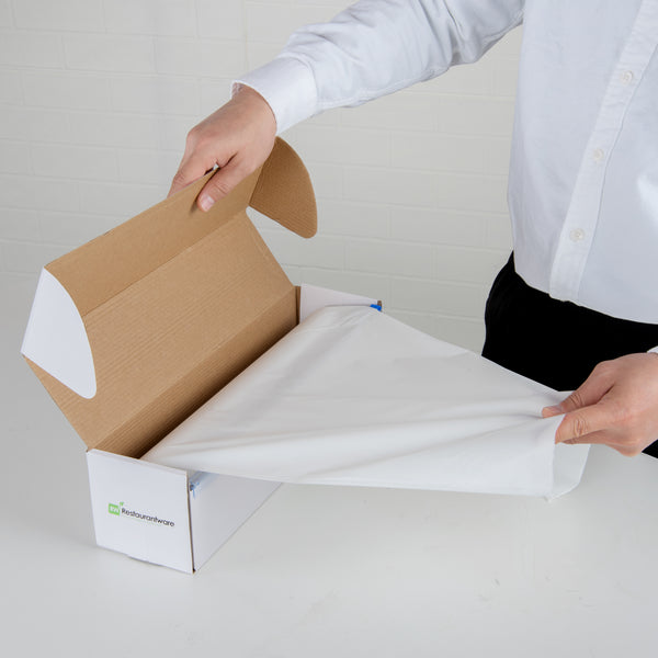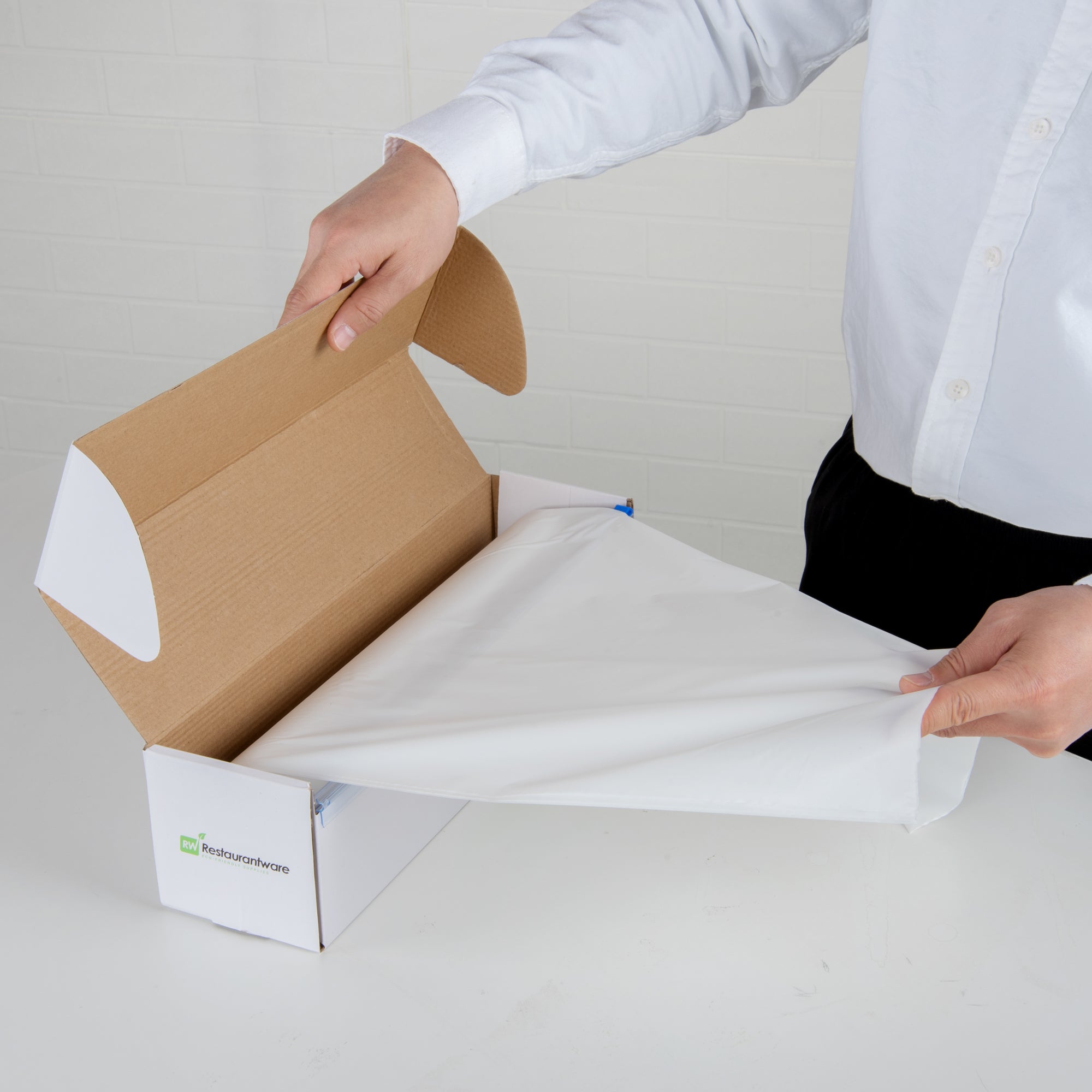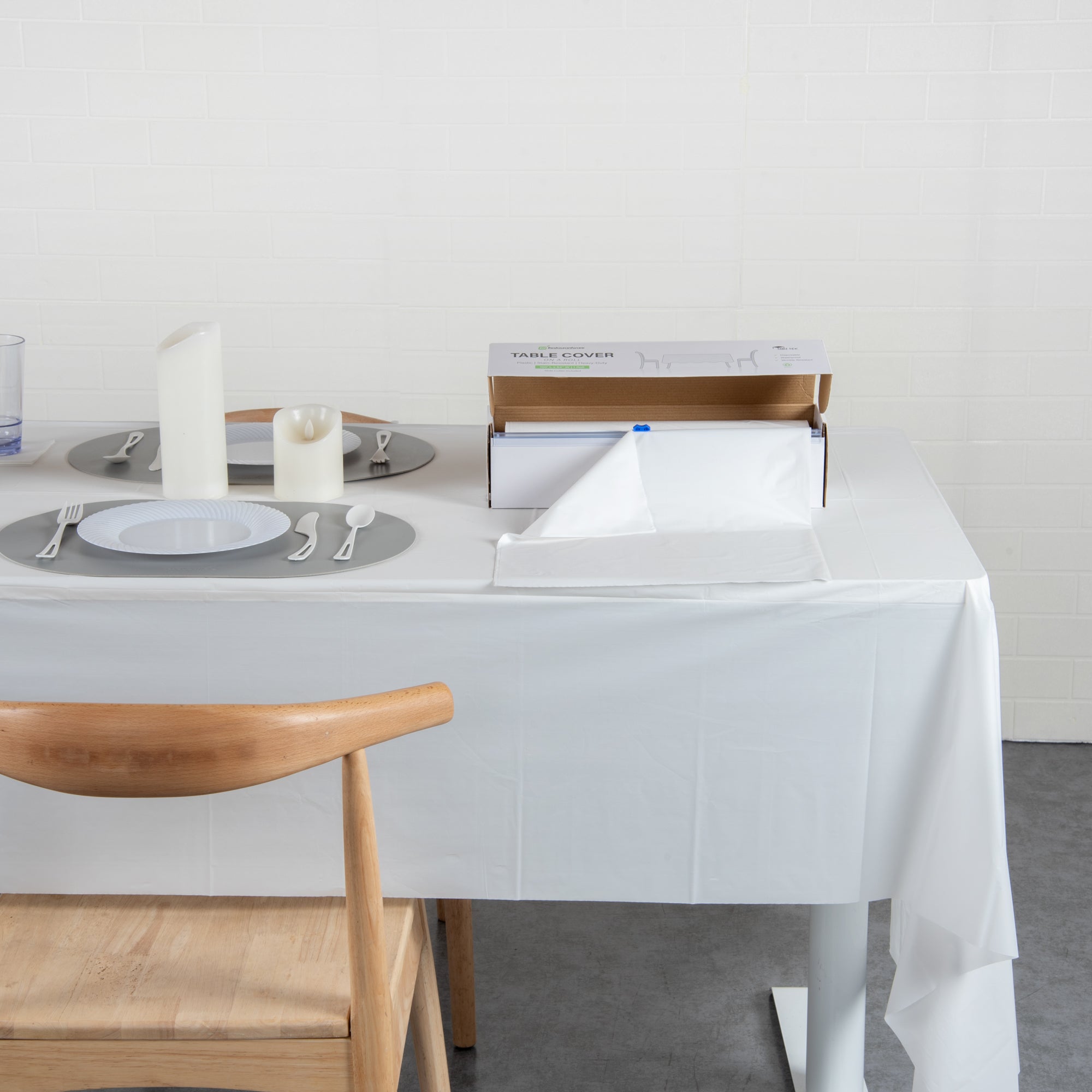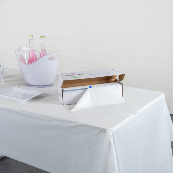 WHITE PLASTIC TABLE COVER ROLL - WITH SLIDE CUTTER