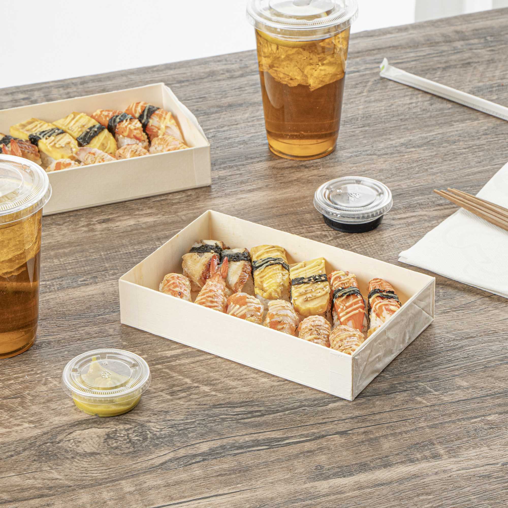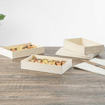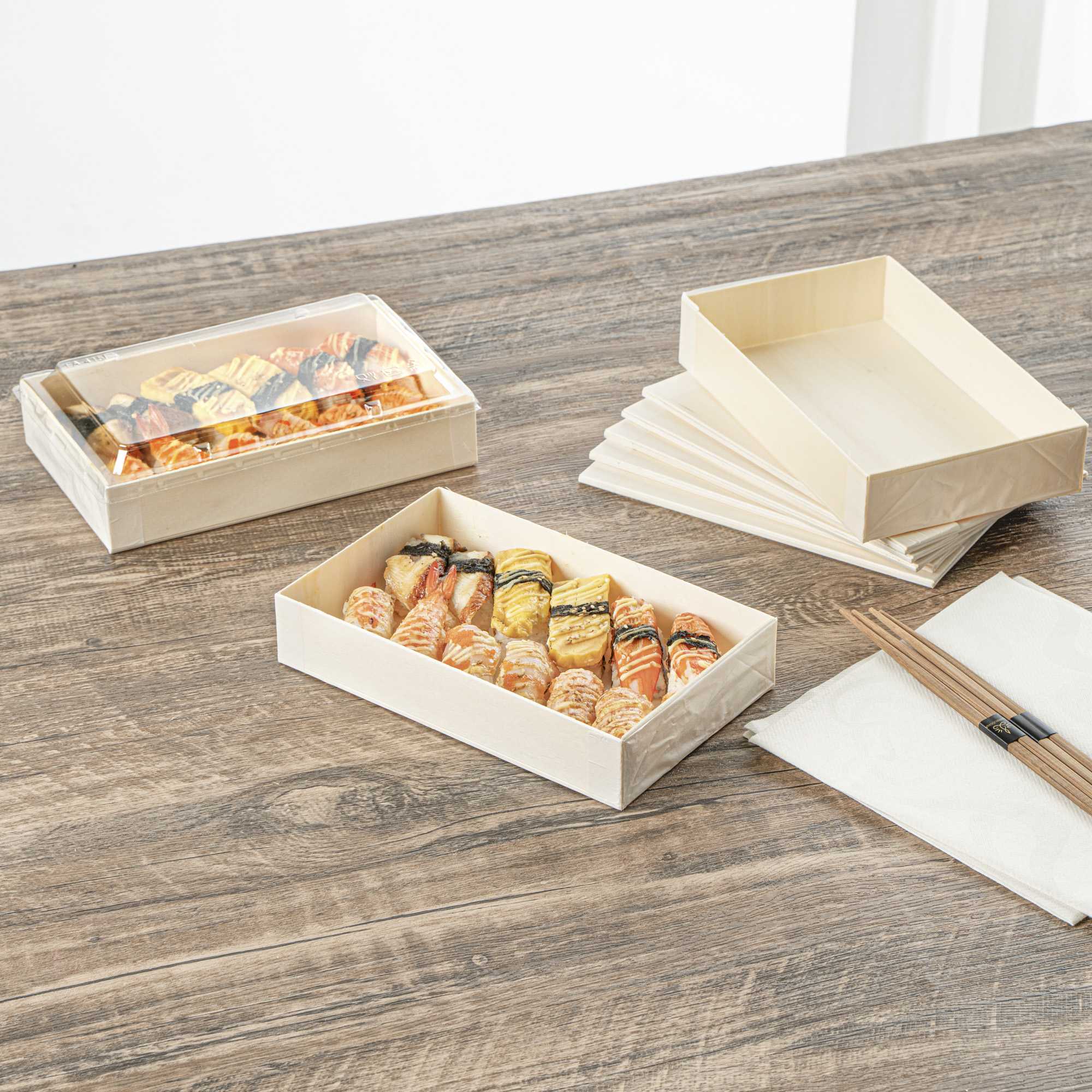 Elevate your food presentations with our Taipei 31-ounce Rectangular Wooden Bento Boxes. Thoughtfully engineered with a collapsible base, these eco-friendly containers streamline storage and speed up assembly, perfect for high-volume service lines and efficient catering setups. Made from natural poplar wood, these boxes are both biodegradable and commercially compostable, aligning with sustainable foodservice goals. For a cohesive packaging solution, pair with our coordinating poplar or plastic lids to protect contents without compromising presentation (SKU: RWB0791K-10 & RWP1937C-10). Freezer-safe for added versatility, they’re great for preparing and storing sushi rolls, fresh fruit, small bites, or temperature-sensitive fare. Their authentic wood texture and polished surface convey a clean, upscale aesthetic that adds to brand value. Each container measures 7.9 inches long by 4.8 inches wide by 1.4 inches tall and accommodates up to 31 ounces. Sold in a 10 count box.
