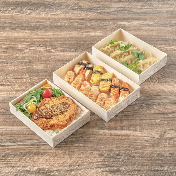 Elevate your food presentations with our Taipei 31-ounce Rectangular Wooden Bento Boxes. Thoughtfully engineered with a collapsible base, these eco-friendly containers streamline storage and speed up assembly, perfect for high-volume service lines and efficient catering setups. Made from natural poplar wood, these boxes are both biodegradable and commercially compostable, aligning with sustainable foodservice goals. For a cohesive packaging solution, pair with our coordinating poplar or plastic lids to protect contents without compromising presentation (SKU: RWB0791K & RWP1937C). Freezer-safe for added versatility, they’re great for preparing and storing sushi rolls, fresh fruit, small bites, or temperature-sensitive fare. Their authentic wood texture and polished surface convey a clean, upscale aesthetic that adds to brand value. Each container measures 7.9 inches long by 4.8 inches wide by 1.4 inches tall and accommodates up to 31 ounces. Sold in a 100 count box.