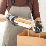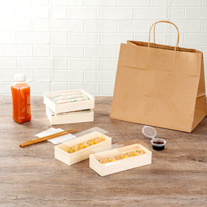 Safeguard your meals during transit with our Taipei Clear Plastic Lids. Constructed from premium quality plastic, these transparent lids provide resilient and durable coverage for your take out orders. Pair these clear plastic lids with their compatible food containers (SKU: RWB0388) to achieve a tightly sealed container to eliminate potential messy accidents during transit. These plastic lids are designed with an elevated roof to ensure that your packed food has ample space for extra toppings or sauces. The transparent finish of these durable plastic lids provides immediate sight of the contents, removing the need to open them. These food container lids are recyclable to facilitate a quick cleaning experience. Each disposable plastic lid measures 7.5 inches long by 3.5 inches wide by 1.25 inches tall. Shipped in a 100 count box. Containers are available and sold separately.