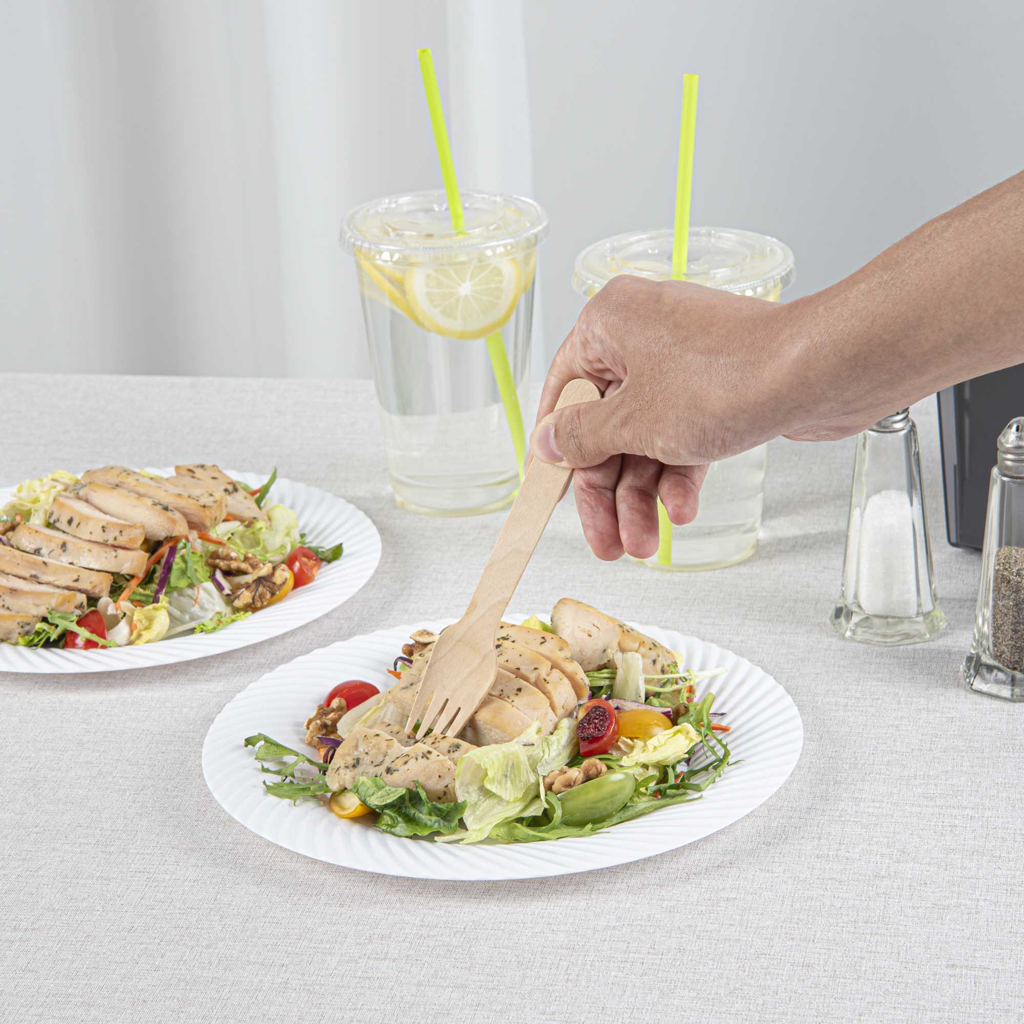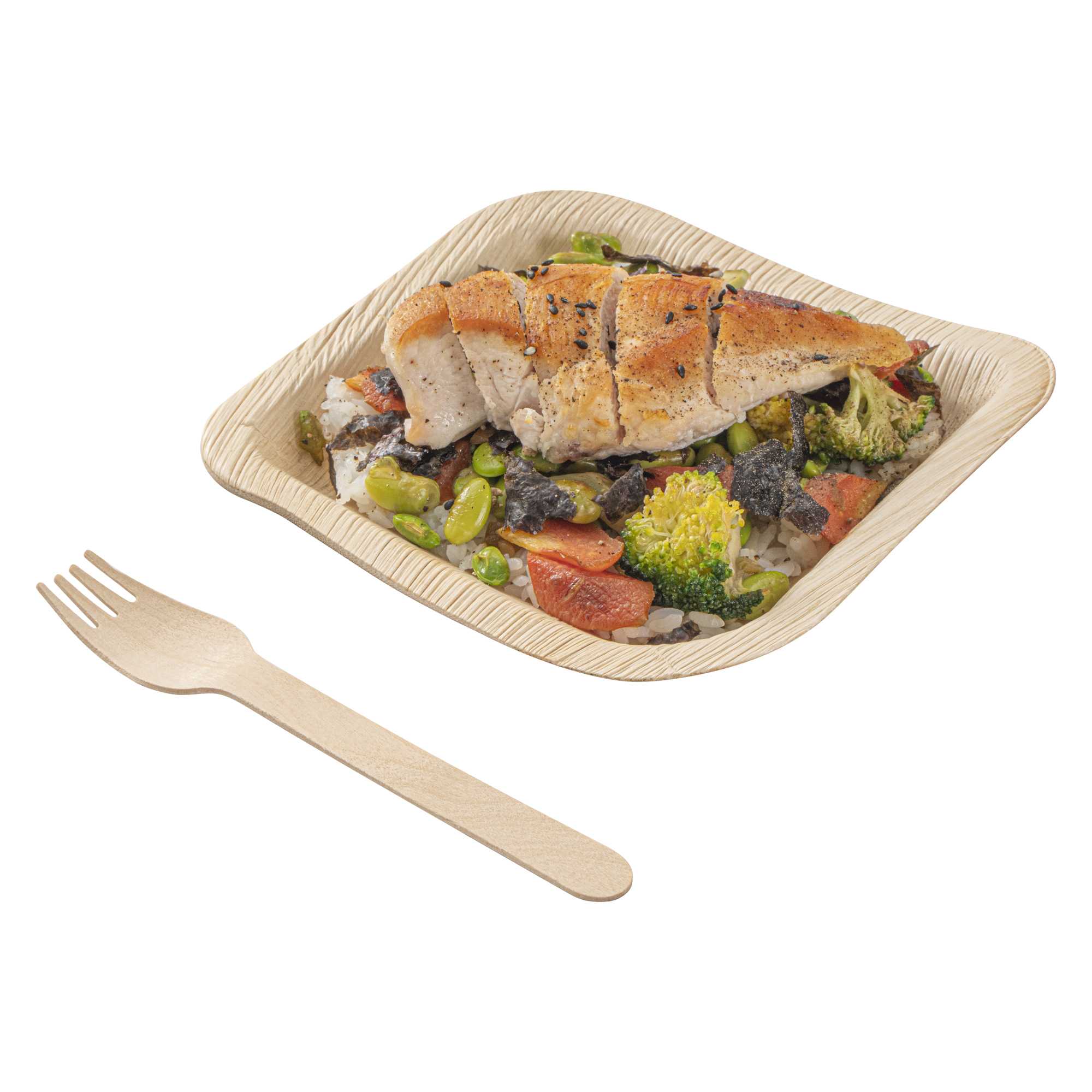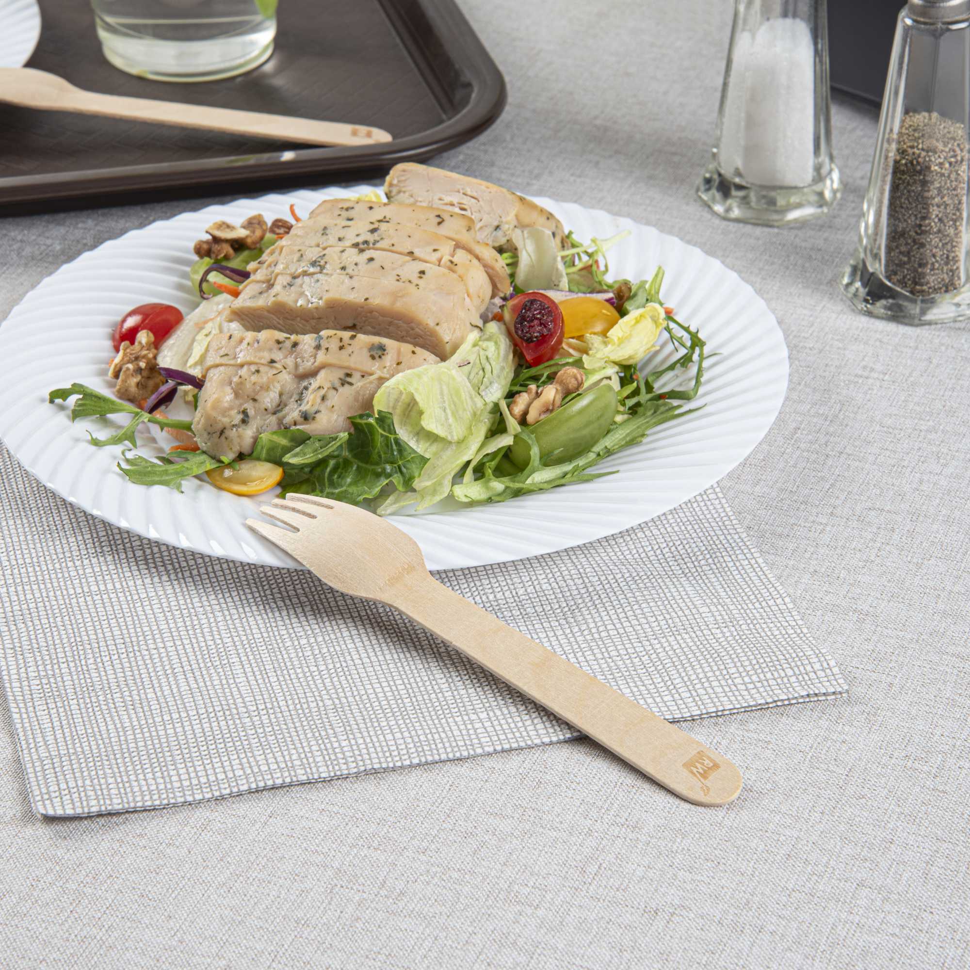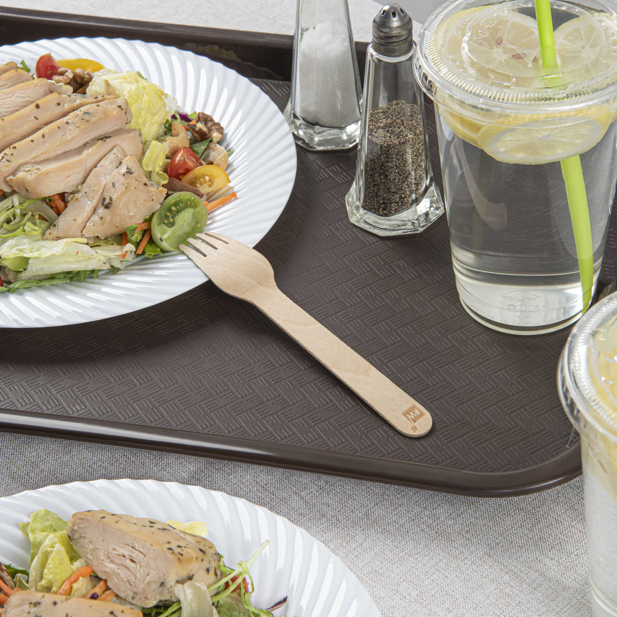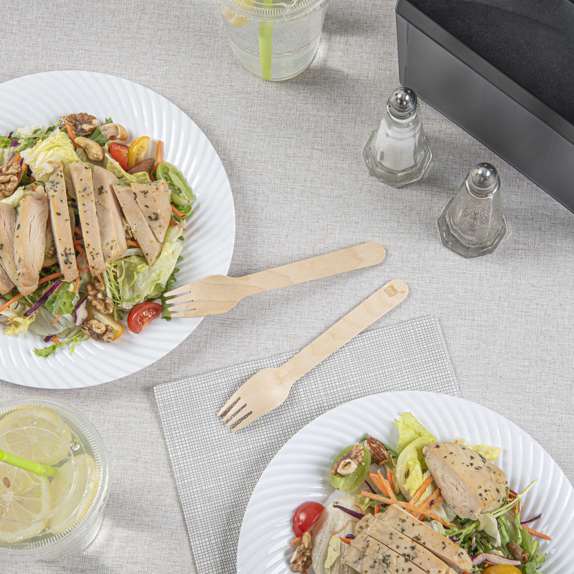 Serve your food in style alongside our Taipei Natural Wood Forks. Constructed from natural birch wood, these disposable wooden forks are an excellent, nature-friendly disposable utensil option. The flat handles of these durable wooden forks are easy to grip and comfortable for customers to hold. These dessert forks feature sturdy wooden construction, making them perfect for serving appetizers, salads, or entrees. Featuring a natural wood finish, these single-use forks add a stylish touch to eco-conscious cafes, food trucks, or fast-casual restaurants. These birch wood forks measure 6.5 inches in length and pair nicely with any type of food presentation. Shipped in a 500 count box.