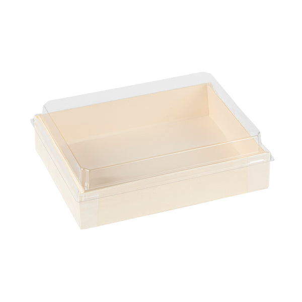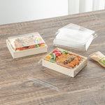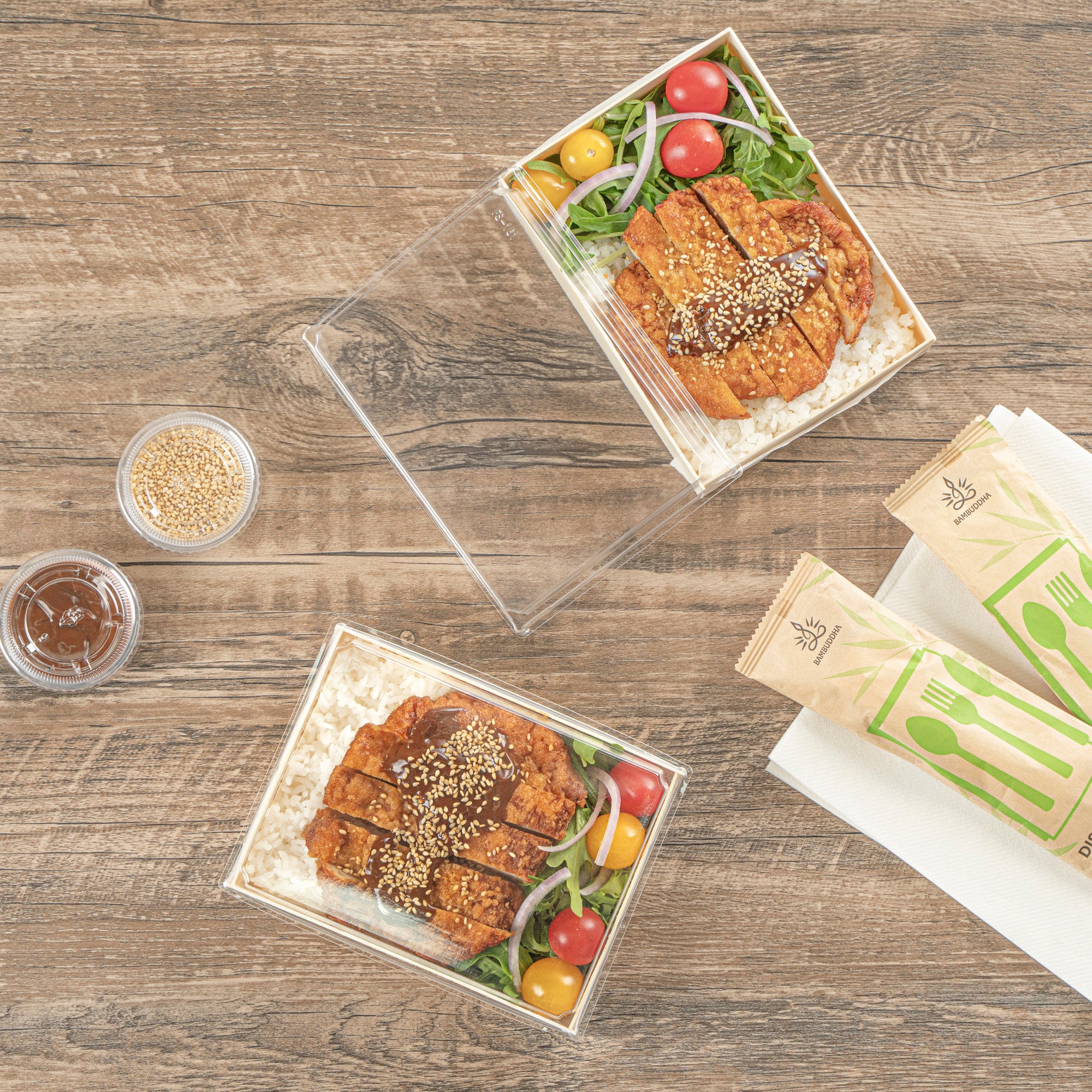 Highlight your culinary creations while locking in freshness with our Taipei Rectangle Clear Plastic Lids. Designed to fit securely over our 24-ounce poplar bento boxes (SKU: RWB0792K), these lids are a smart choice for take out counters, delivery packaging, and quick-serve displays. Crafted from sturdy plastic, their crystal-clear dome design puts food on full display while maintaining protection and freshness. Their stackable design ensures efficient storage and easy handling during service. Each lid measures 6.5 inches in length by 4.72 inches in width. Sold in a 100 count box.