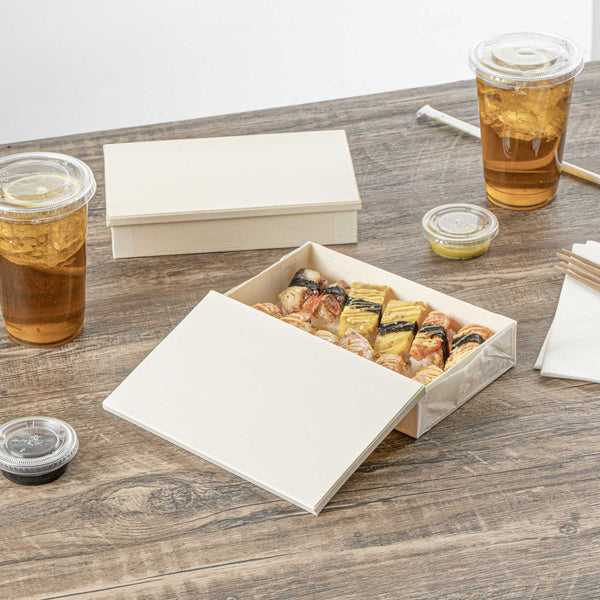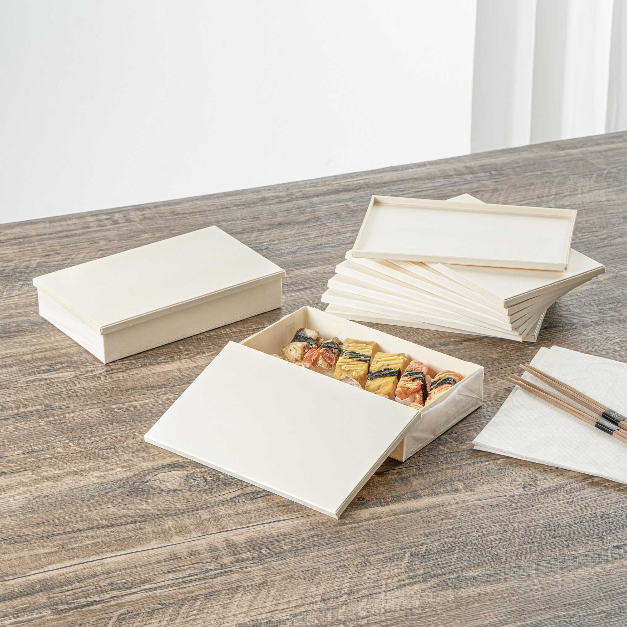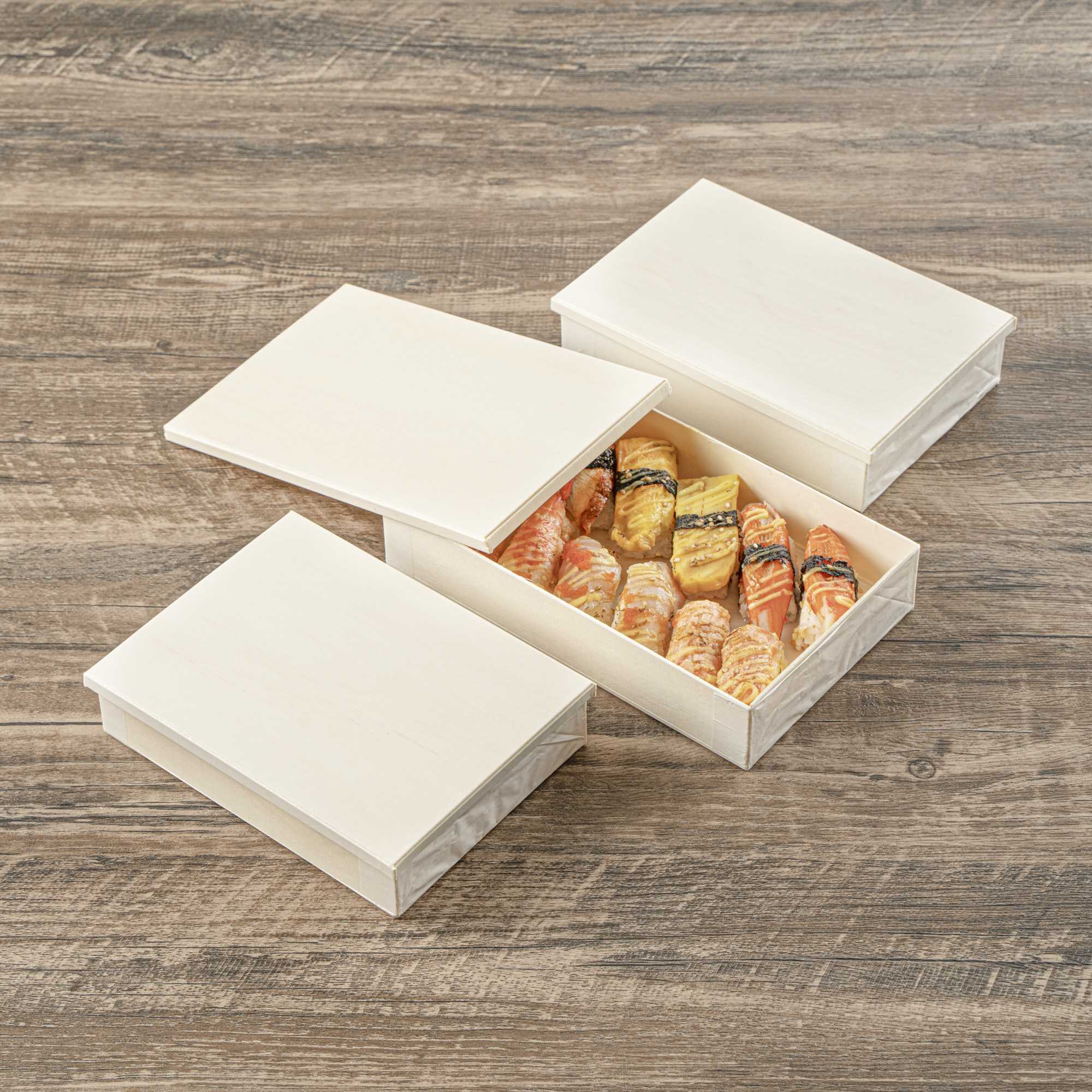 Elevate food presentation with the natural look of our Taipei Rectangle Natural Poplar Lids. These lids are designed to pair seamlessly with our 31-ounce rectangular wooden bento boxes (SKU: RWB0790K-10), ensuring a secure and reliable fit for transport and service. Crafted from eco-friendly poplar wood, they are both biodegradable and commercially compostable, making them a sustainable solution for modern foodservice operations. Their freezer-safe feature offers versatility for storing pre-portioned meals, chilled items, or prep-ahead dishes. With a warm, Japanese-inspired aesthetic, these wooden lids add an elegant finishing touch to sushi, snacks, and artisanal fare. Each lid measures 7.9 inches in length by 4.8 inches in width. Sold in a 10 count box.
