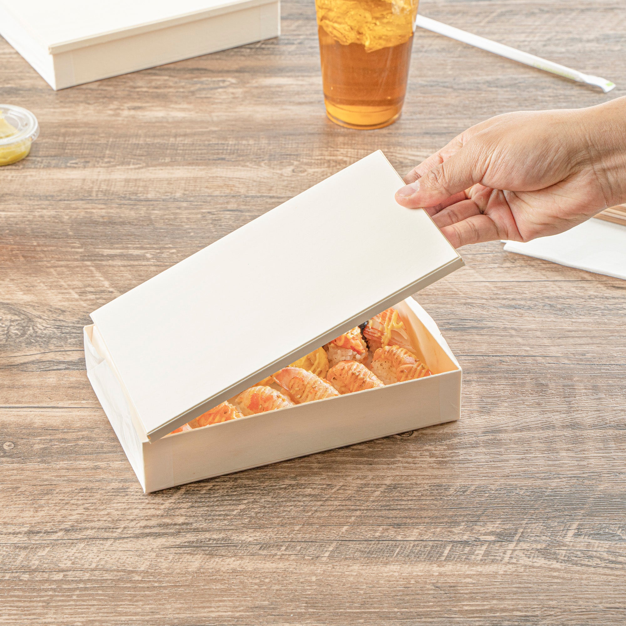 Elevate food presentation with the natural look of our Taipei Rectangle Natural Poplar Lids. These lids are designed to pair seamlessly with our 31-ounce rectangular wooden bento boxes (SKU: RWB0790K), ensuring a secure and reliable fit for transport and service. Crafted from eco-friendly poplar wood, they are both biodegradable and commercially compostable, making them a sustainable solution for modern foodservice operations. Their freezer-safe feature offers versatility for storing pre-portioned meals, chilled items, or prep-ahead dishes. With a warm, Japanese-inspired aesthetic, these wooden lids add an elegant finishing touch to sushi, snacks, and artisanal fare. Each lid measures 7.9 inches in length by 4.8 inches in width. Sold in a 100 count box.