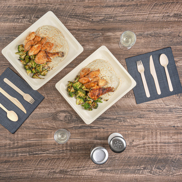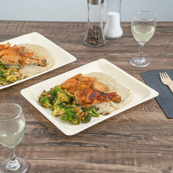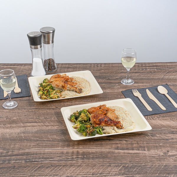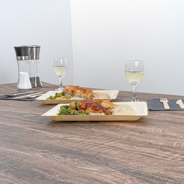 Experience elevated dining with our Taipei Rectangle Natural Poplar Plates. These serving plates are made from poplar wood and are ideal for showcasing a culinary spectrum, from sizzling shrimp stir-fry to vibrant Greek salads, ensuring versatility at your food events. With a greaseproof design, these disposable plates ensure a mess-free eating experience and can be used for serving saucy dishes such as kinds of pasta at your next catered event. These party plates are biodegradable and commercially compostable, showcasing the eco-conscious practices of your restaurants. The rectangular shape of these pasta plates creates a modern and visually appealing presentation, allowing for an elegant arrangement of your favorite dishes. With a neutral finish, these disposable dinner plates seamlessly blend into any table setting. These serving dishes measure 10.5 inches in length by 8.5 inches in width. Sold in a 200 count box. These items will only degrade outside of the traditional solid waste stream.