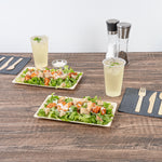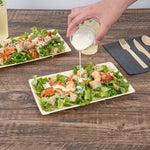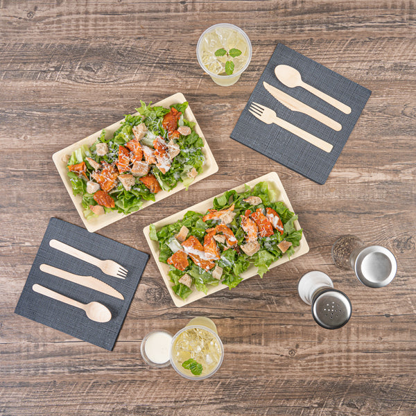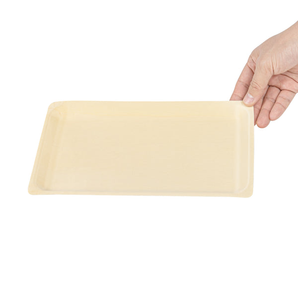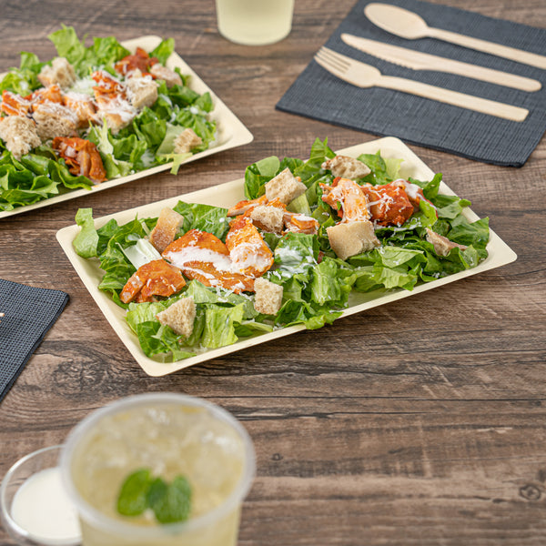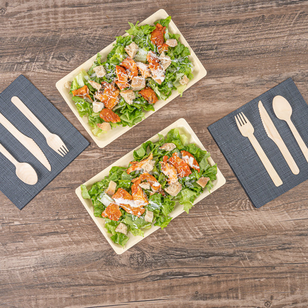 Elevate your food presentation with our Taipei Rectangle Natural Poplar Plates. Crafted from poplar wood, these serving plates are durable and can handle a wide range of dishes, from cool salads to piping hot lasagna. These disposable plates are greaseproof and ideal for serving saucy dishes, ensuring a clean and mess-free dining experience without leaks. Ideal for eco-conscious catering companies and restaurants, these party plates are biodegradable and commercially compostable. These food plates have a rectangular shape that creates a sleek and stylish appearance for a visually appealing display. The neutral finish of these serving dishes provides a versatile canvas for your culinary masterpieces while seamlessly blending with your table decor. Measuring 10.75 inches in length by 6.25 inches in width, these disposable dinner plates provide ample space for serving a variety of dishes. Sold in a 200 count box. These items will only degrade outside of the traditional solid waste stream.
