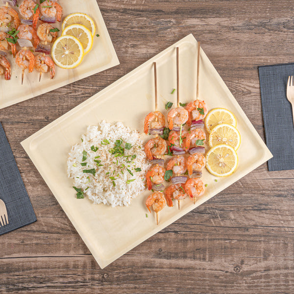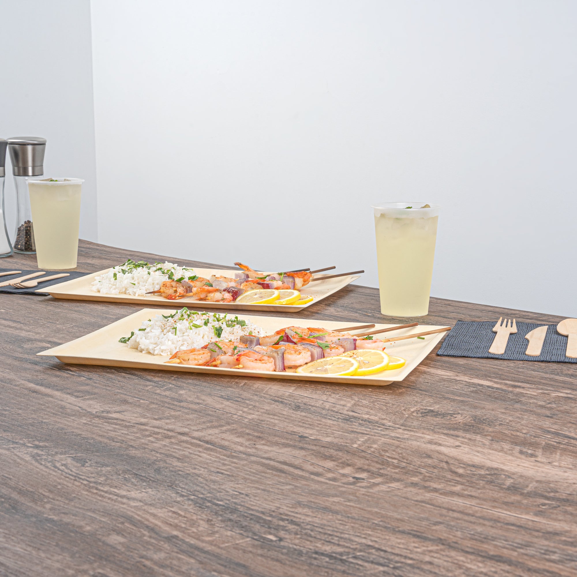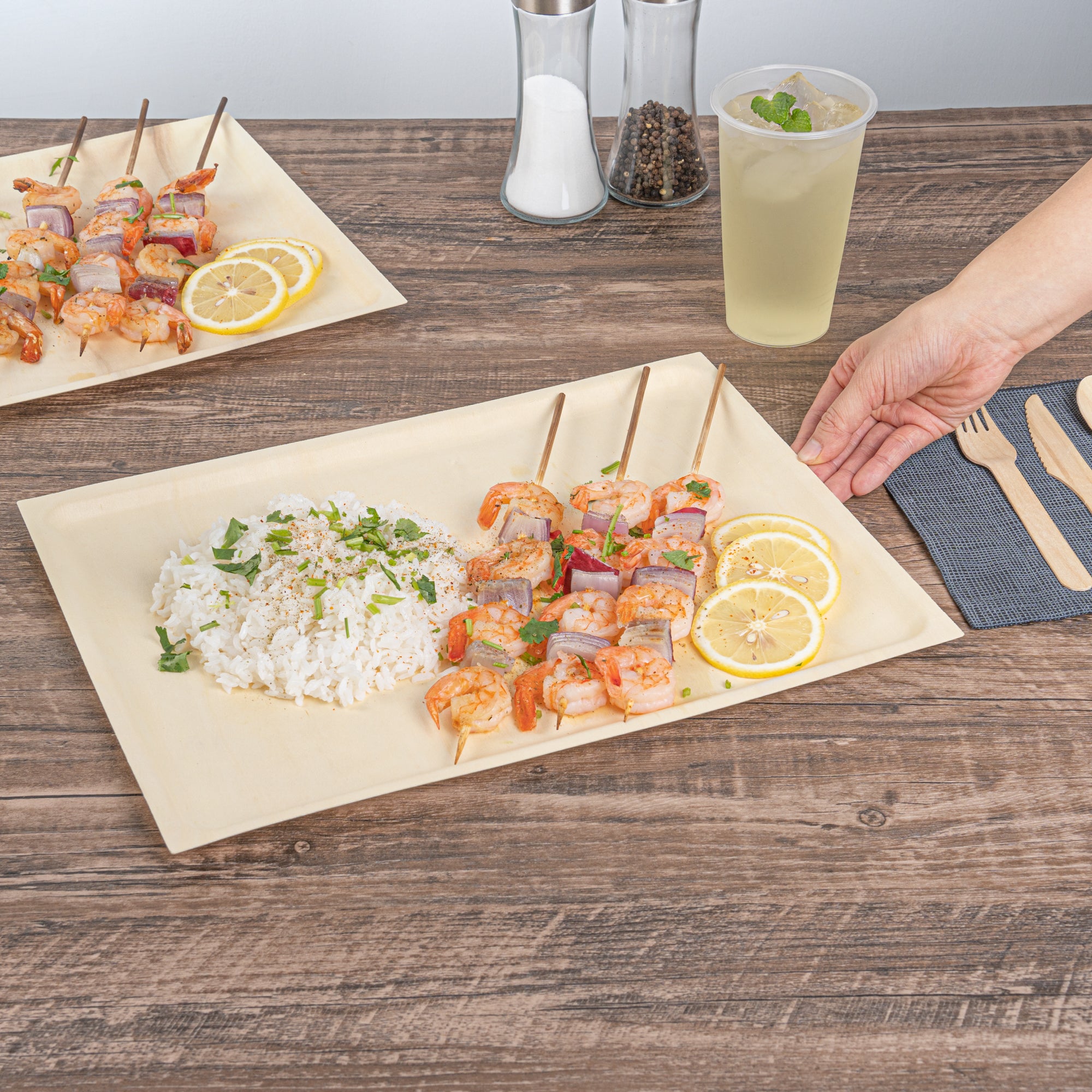 Serve your favorite dishes with our Taipei Rectangle Natural Poplar Plates. Crafted from poplar wood, these serving plates are durable and suitable for holding hot or cold food items. To accompany saucy dishes while maintaining their integrity, these party plates are constructed with a greaseproof design, ensuring optimal performance throughout use. Ideal for eco-conscious catering companies and restaurants, these disposable plates are biodegradable and commercially compostable. To enhance your table setting with a modern touch, these serving dishes feature a rectangular shape, creating an elegant presentation for a variety of culinary delights. With a minimalistic neutral finish, these disposable dinner plates effortlessly complement any table decor, adding a touch of sophistication to your dining experience. Measuring 14.5 inches in length by 10.75 inches in width, these dinner plates provide ample room for guests to enjoy their meals. Sold in a 50 count box. These items will only degrade outside of the traditional solid waste stream.
