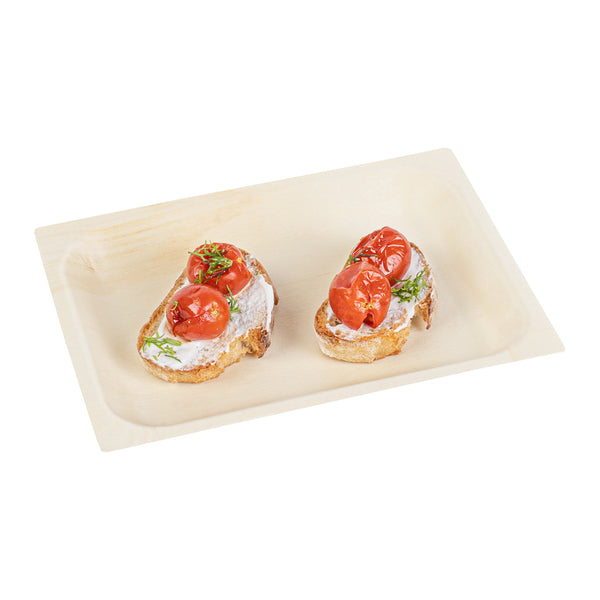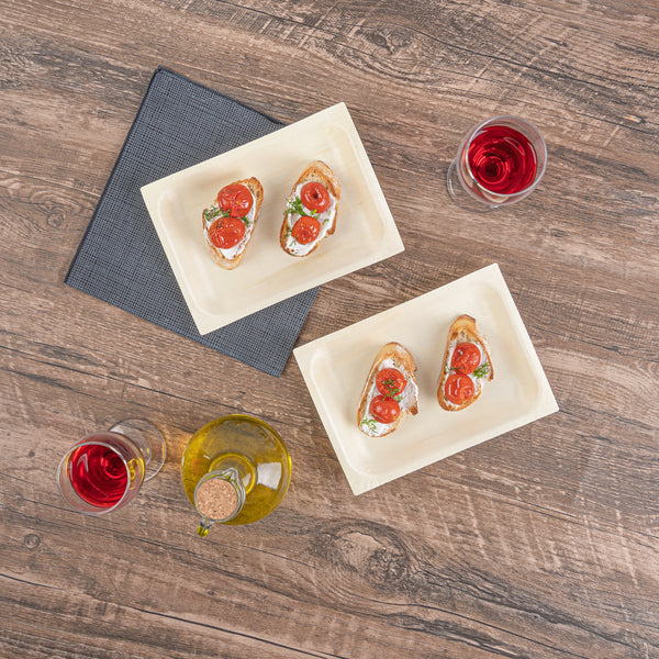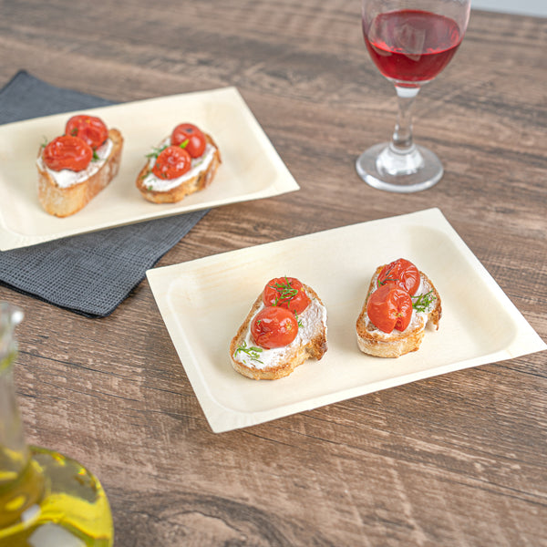 Serve bite-sized culinary delights with our Taipei Rectangle Natural Poplar Plates. Crafted from resilient poplar wood, these party plates ensure durability at catered events, providing a reliable platform to showcase a diverse range of both hot and cold dishes. These serving plates are greaseproof and ideal for accommodating saucy dishes, ensuring a clean eating experience. Ideal for eco-friendly foodservice establishments, these disposable plates are biodegradable and commercially compostable. With a rectangular shape, these food plates carry a minimalist yet fashionable look that amplifies the presentation of your food. The neutral finish of these serving dishes provides a warm, timeless feel to your dining setup. Measuring 7 inches in length by 5 inches in width, these rectangle plates offer ample space to serve various appetizers and desserts. Sold in a 50 count box. These items will only degrade outside of the traditional solid waste stream.