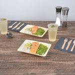 Add style to your food presentation with our Taipei Rectangle Natural Poplar Plates. These serving plates are crafted from poplar wood and are durable, ideal for serving various food items such as piping hot lasagna to chilled fruit salads. With a greaseproof construction, these party plates ensure a mess-free dining experience. These disposable plates are biodegradable and commercially compostable, providing a responsible option for your dining requirements. The rectangular shape of these food plates adds a touch of modernity and sophistication to your dining experience. These serving dishes have a neutral finish that complements a variety of table settings and allows the vibrant colors of your culinary creations to take center stage. Measuring 8.75 inches in length by 6.75 inches in width by 1.25 inches in height, these disposable dinner plates provide ample room to serve generous portions, ensuring your guests are satisfied. Sold in a 50 count box. These items will only degrade outside of the traditional solid waste stream.
