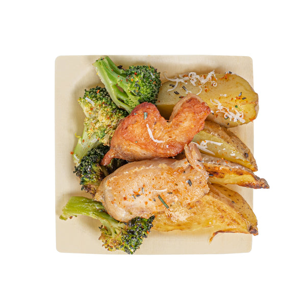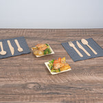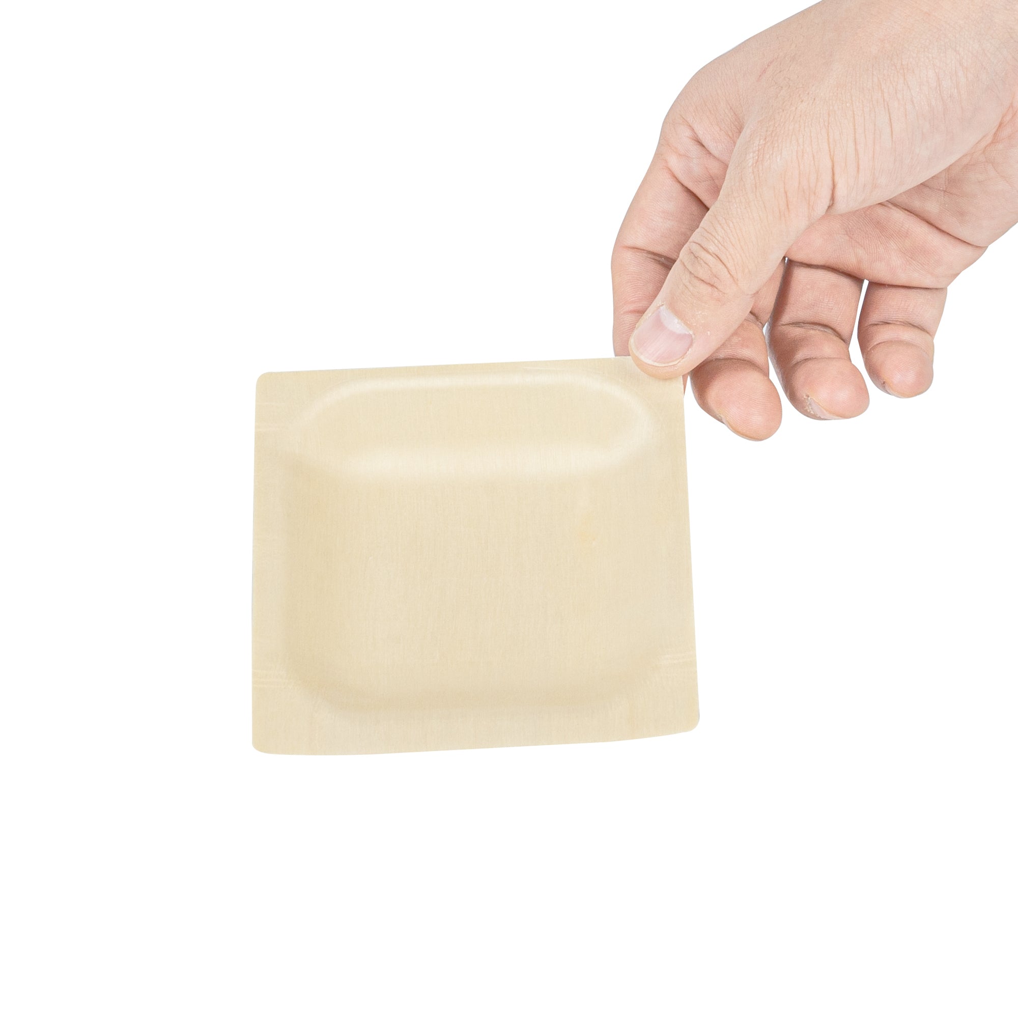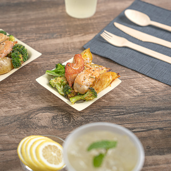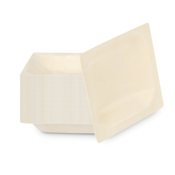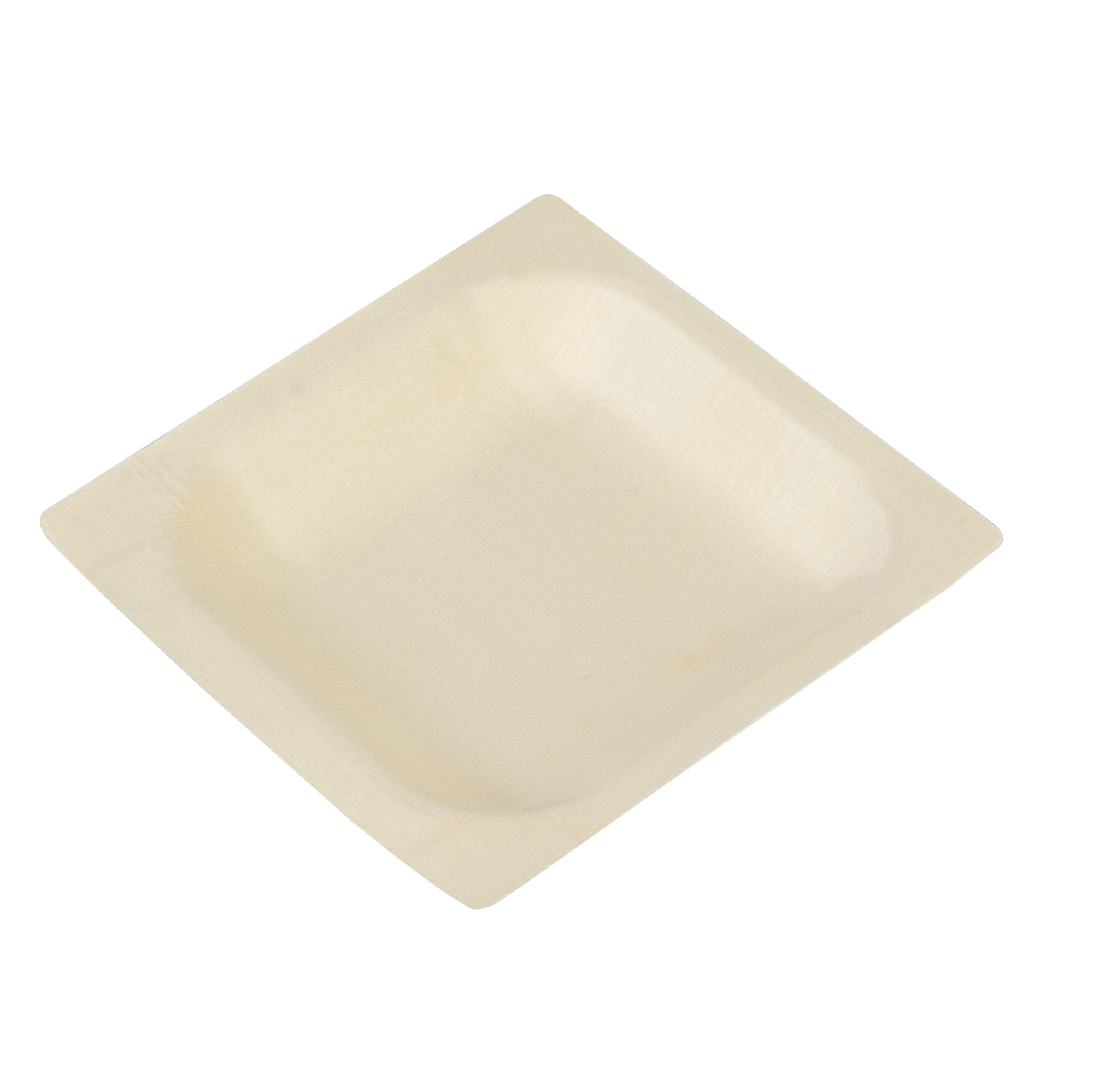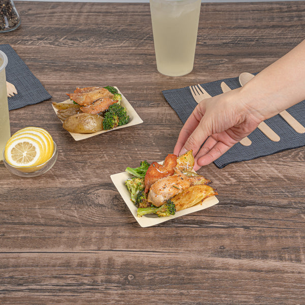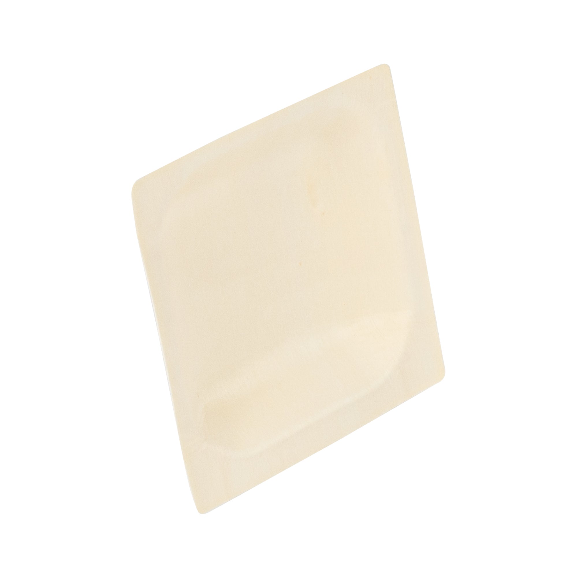 Serve your culinary creations with our Taipei Square Natural Poplar Plates. Crafted from durable poplar wood, these party plates are suitable for serving a variety of food items, from hot hors d'oeuvres to chilled finger foods. These serving plates are greaseproof, ensuring a solution for serving different dishes without concerns of messy leakage or seepage during use. To showcase your commitment to eco-conscious practices, these disposable plates are biodegradable and commercially compostable. The square shape of these food plates lends a modern and refined touch that enhances your food presentation. With a neutral finish, these serving dishes seamlessly complement diverse table settings, adding a touch of versatility to your dining presentation. These appetizer plates measure 4 inches in length by 4 inches in width. Sold in a 50 count box. These items will only degrade outside of the traditional solid waste stream.