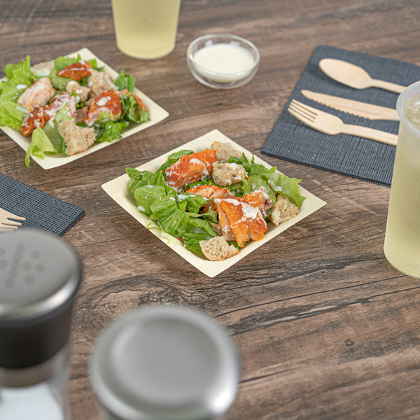 Unleash a new dining experience with our Taipei Square Natural Poplar Plates. Crafted from resilient poplar wood, these party plates are versatile enough to serve an array of culinary delights, from sizzling skewers to refreshing appetizers. These serving plates are greaseproof to avoid leaks from saucy dishes, ensuring a clean dining experience. To showcase your commitment to the environment, these disposable plates are biodegradable and commercially compostable. The square design of these food plates adds a modern and distinctive flair to your table presentation, contributing to a contemporary aesthetic for a variety of culinary delights. With a neutral finish, these serving dishes create an elegance that highlights your served food. These appetizer plates measure 5 inches in length by 5 inches in width. Sold in a 50 count box. These items will only degrade outside of the traditional solid waste stream.