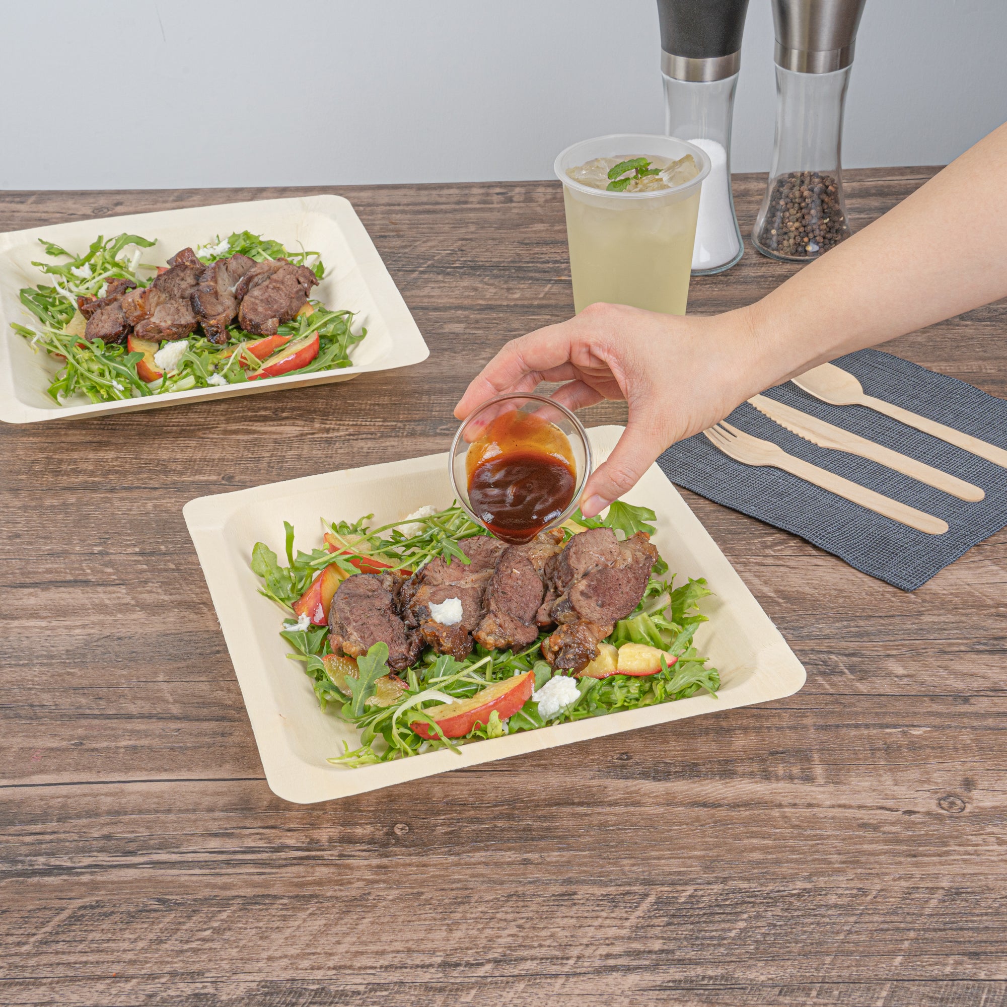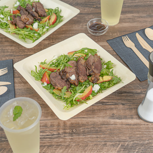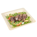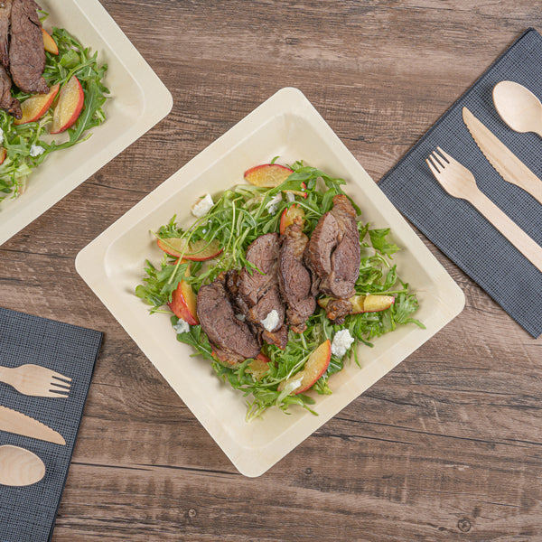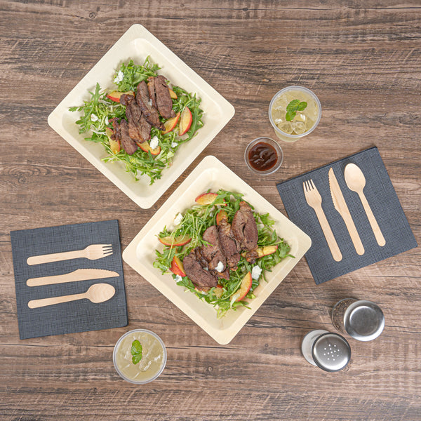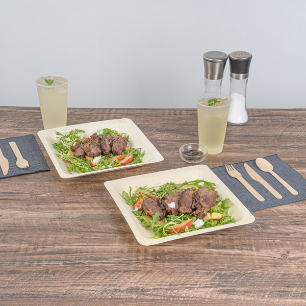 Discover rustic charm with our Taipei Square Natural Poplar Plates. Constructed from poplar wood, these party plates boast premium robustness and are suitable for serving anything from hearty meatballs to refreshing fruit salads. These serving plates are greaseproof to ensure a mess-free dining experience, especially when serving saucy cuisines. To help your endeavor to minimize environmental impact, these disposable plates are biodegradable and commercially compostable. The square design of these food plates integrates a contemporary touch, enhancing the allure of your dishes. Featuring a neutral hue, these serving dishes add an elegant, timeless vibe to your dining environment. These disposable appetizer plates measure 9.75 inches in length by 9.75 inches in width by 1 inch in height. Sold in a 200 count box. These items will only degrade outside of the traditional solid waste stream.