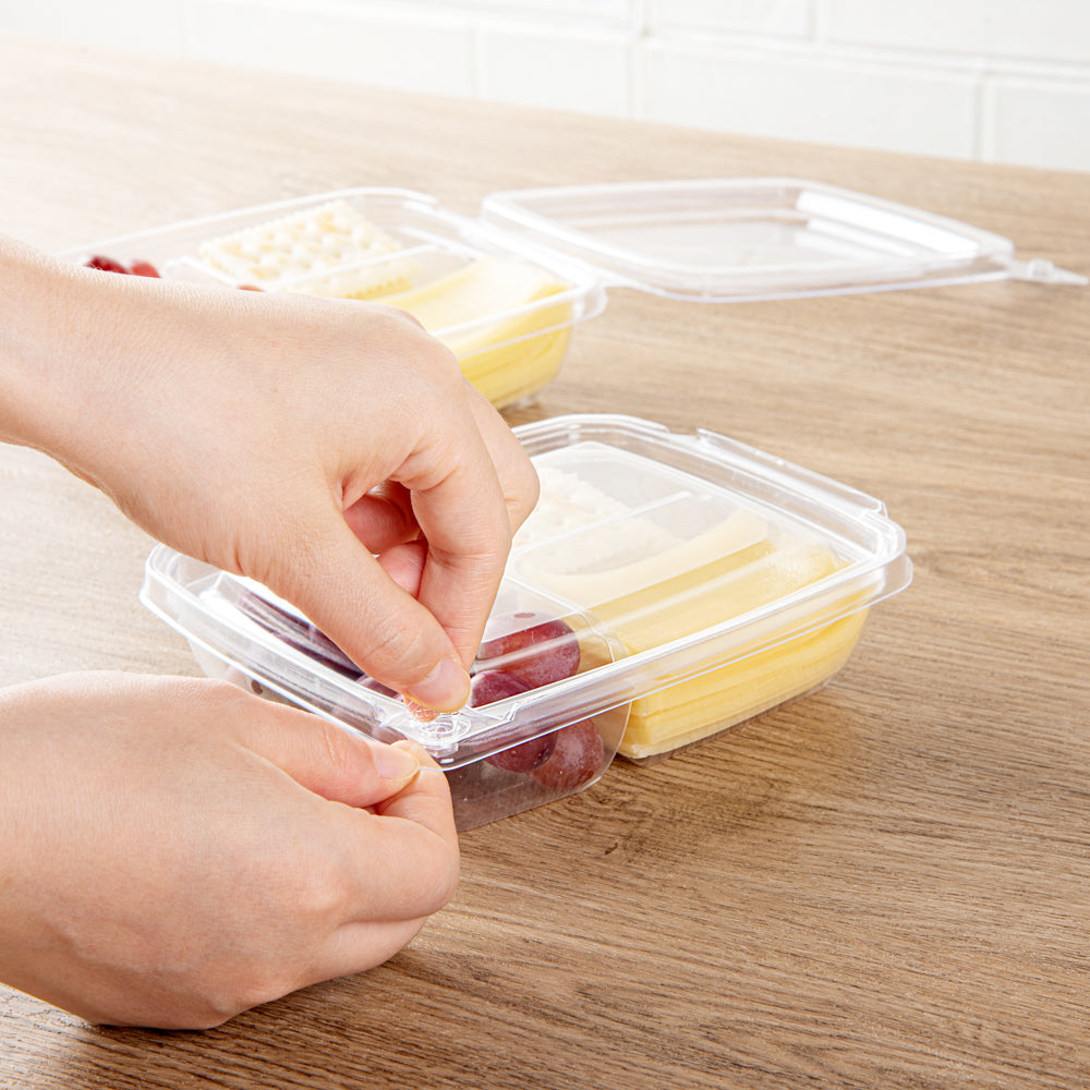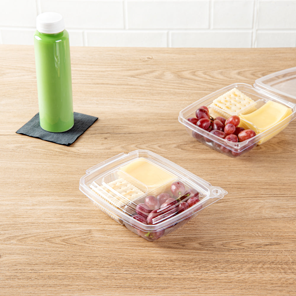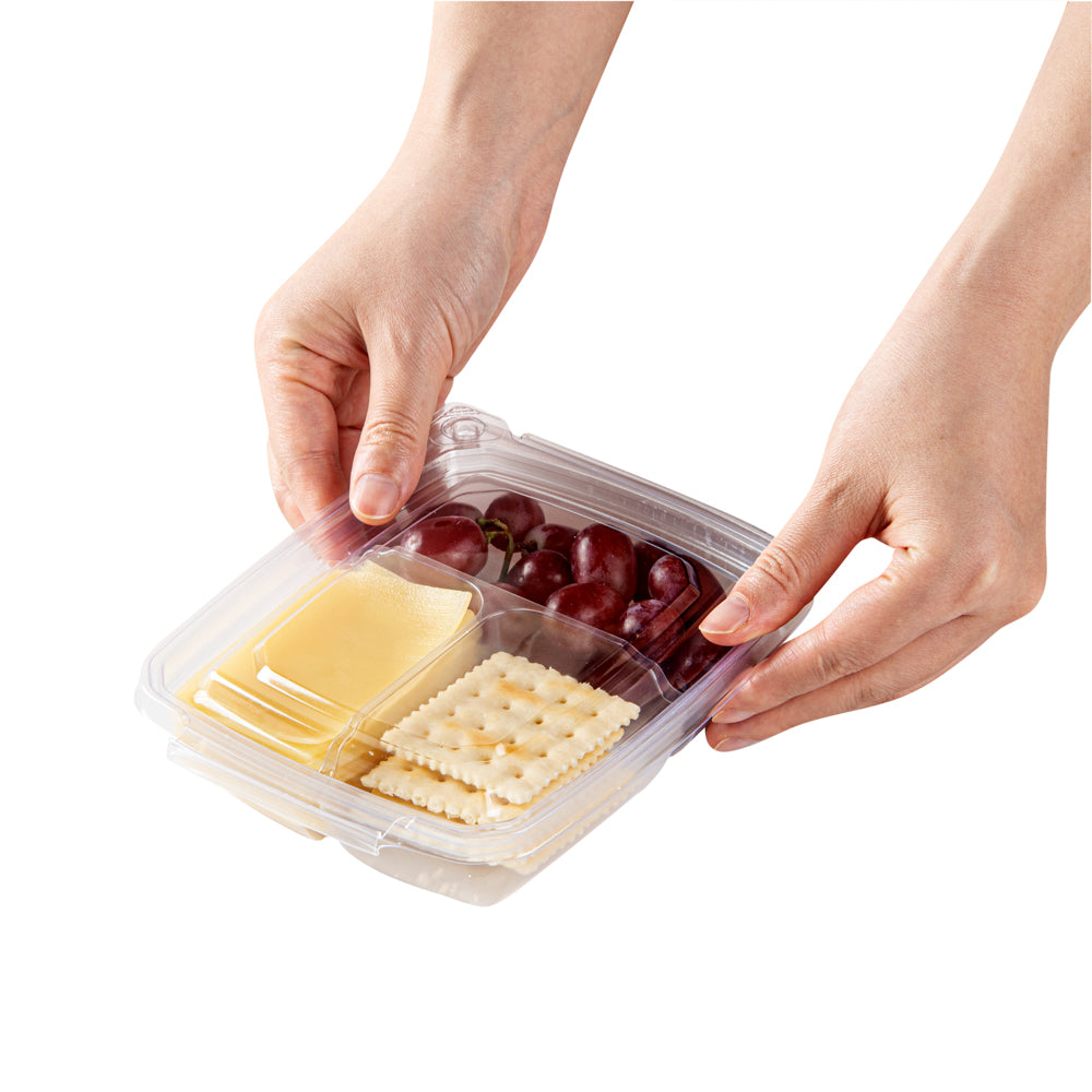 11 OZ PLASTIC CONTAINER - WITH LID, TAMPER-EVIDENT, 3 COMPARTMENTS