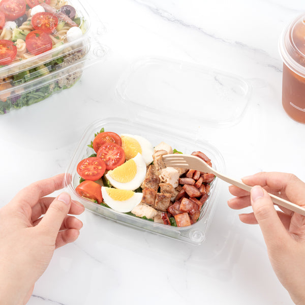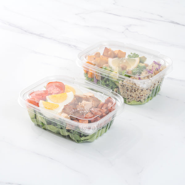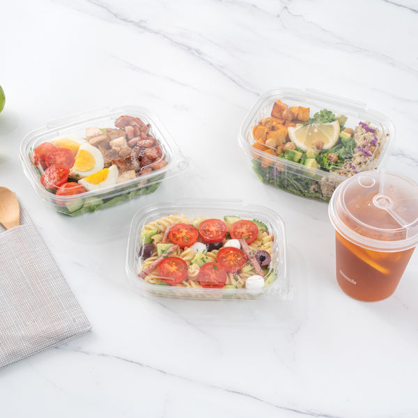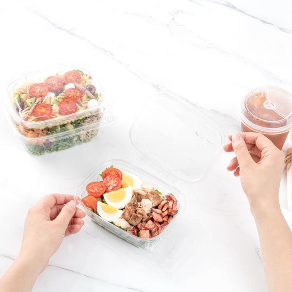 Equipped with hinged lids, these clear containers create a tight seal for a secure way to take food on the go. Avoid accidental spills during your commute!