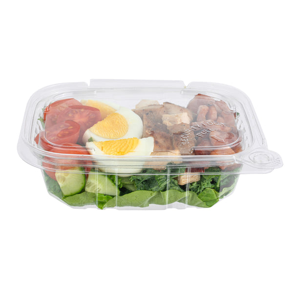 Tamper Tek 12 oz Rectangle Clear Plastic Container - with Hinged Lid, Tamper-Evident - 4 3/4