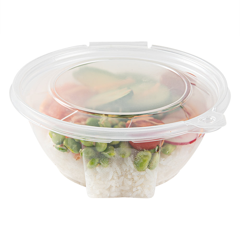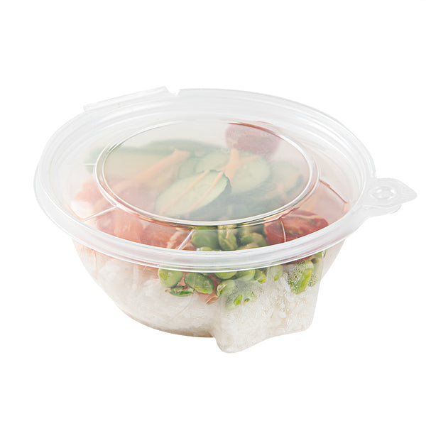 24 OZ CLEAR PLASTIC BOWL - WITH LID, TAMPER-EVIDENT, MICROWAVABLE