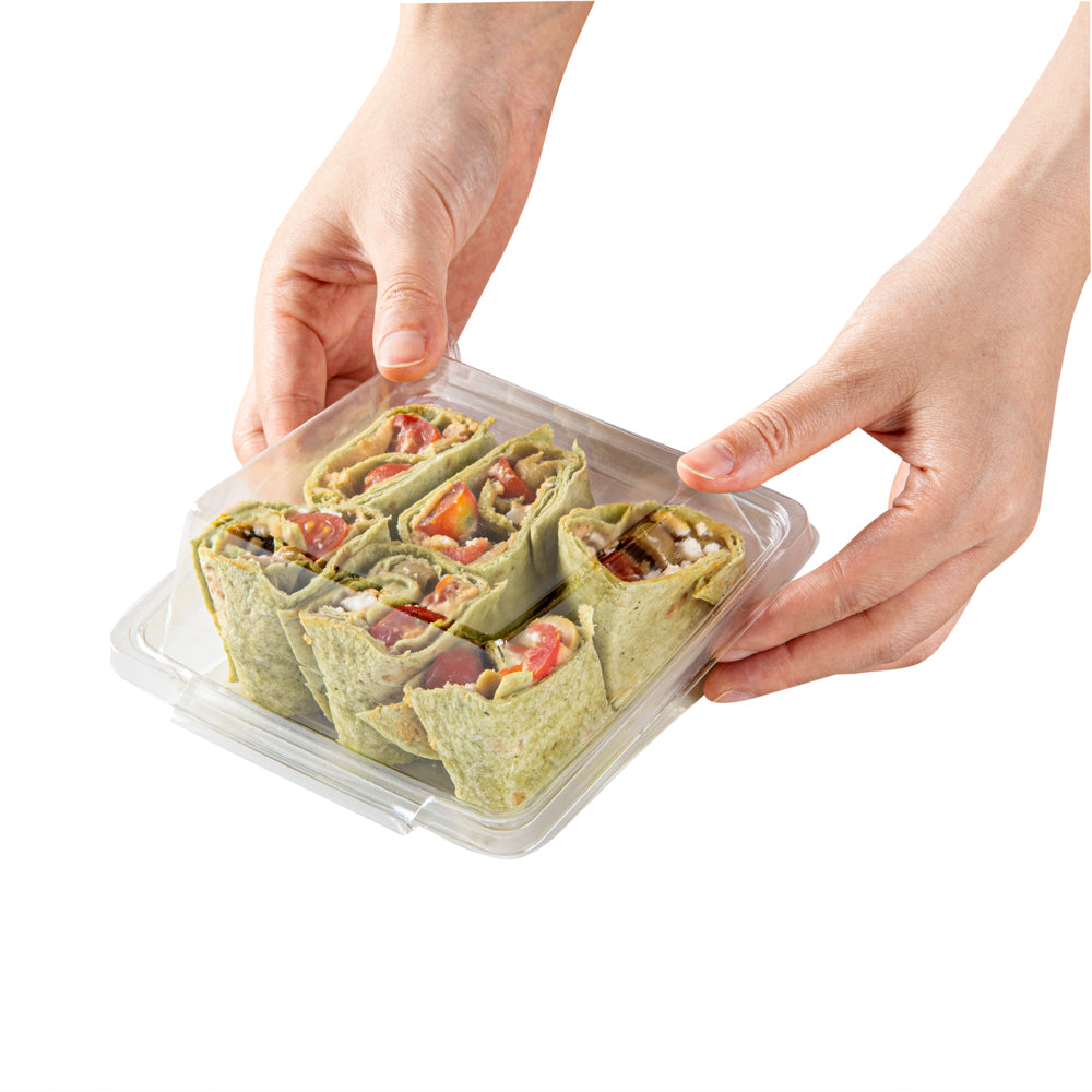 SQUARE CLEAR PLASTIC SANDWICH CONTAINER - WITH LID, TAMPER-EVIDENT