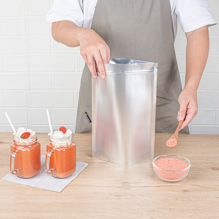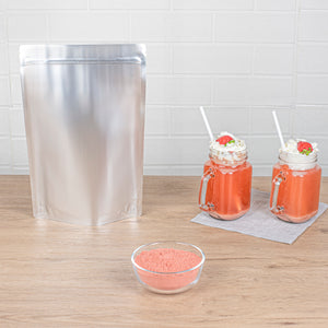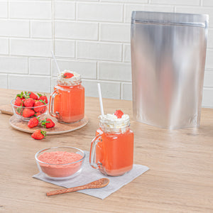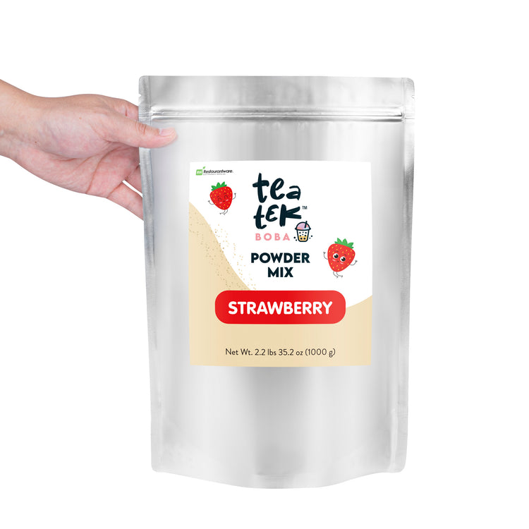 Enhance your beverage creations with our Tea Tek 35.2-ounce Strawberry Powder Mixes, perfect for crafting delicious smoothies, milk teas, and flavored milk. These strawberry powders deliver a burst of fruity goodness in every sip. Designed to be your go-to smoothie powder, these mixes ensure consistent flavor and texture in all your blended drinks. Store the fruit drink powders in a vacuum-sealed container to preserve freshness and always use a dry, clean powder scoop for best results. Securely sealed and resealable after opening, these mixes maintain the quality of the powder for extended use. Measuring 8.66 inches in length by 4.72 inches in width by 12.99 inches in height, these fruit smoothie mixes fits perfectly in your commercial kitchen or storage. Sold in a 10 count box.