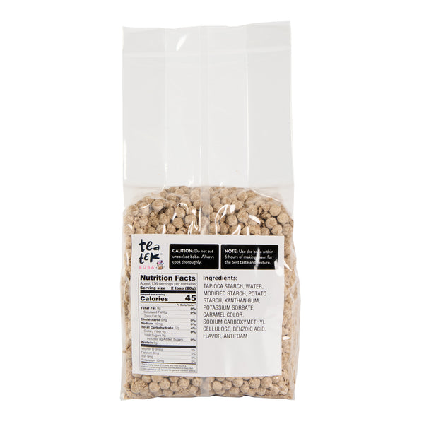 Enhance your beverage menu with our versatile tapioca pearls. Tea Tek Brown Tapioca Pearls offer a chewy texture that elevates the taste and feel of bubble tea. With a six-hour hold time, these boba pearls ensure continuous service during busy hours, reducing downtime and enhancing customer satisfaction. The simple boiling process allows for quick preparation, making them ideal for high-volume establishments such as cafés and bubble tea shops. Measuring 5.9 inches in length, these bubble tea pearls come in six-pound bulk packaging, perfect for minimizing the frequency of reordering. The brown color of these pearls complements a variety of beverages, adding visual appeal to your specialty drinks. Crafted from high-quality tapioca starch, these pearls deliver an authentic original flavor that your customers will love. Simplify your operations and expand your drink offerings with these essential tapioca pearls. Each order includes 1 Tea Tek Brown Tapioca Pearls.