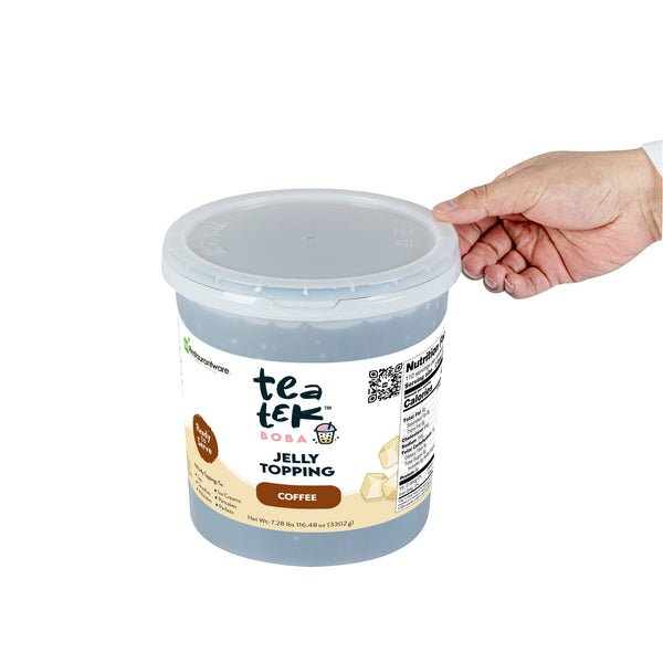 Elevate your dessert menu with versatile, ready-to-use toppings. Tea Tek Lychee Flavor Coffee Jelly offers a delectable coffee flavored jelly that enhances beverages and desserts with a rich, aromatic coffee taste. Its lychee flavors add a unique twist to boba teas and smoothies, making it an essential coffee jelly for bubble tea enthusiasts. Packaged in a large 7.28-pound container, this dessert topping jelly is perfect for high-volume operations, reducing the need for frequent restocking while saving valuable preparation time. With dimensions of 6 inches by 9 inches, it fits seamlessly into any kitchen setup. This edible, low-in-cholesterol jelly supports healthier menu options, appealing to health-conscious customers. Add this delightful topping to ice cream sundaes, parfaits, or as a filling for pastries without the hassle of cooking, streamlining your foodservice operations. Each order includes 1 Tea Tek Lychee Flavor Coffee Jelly.