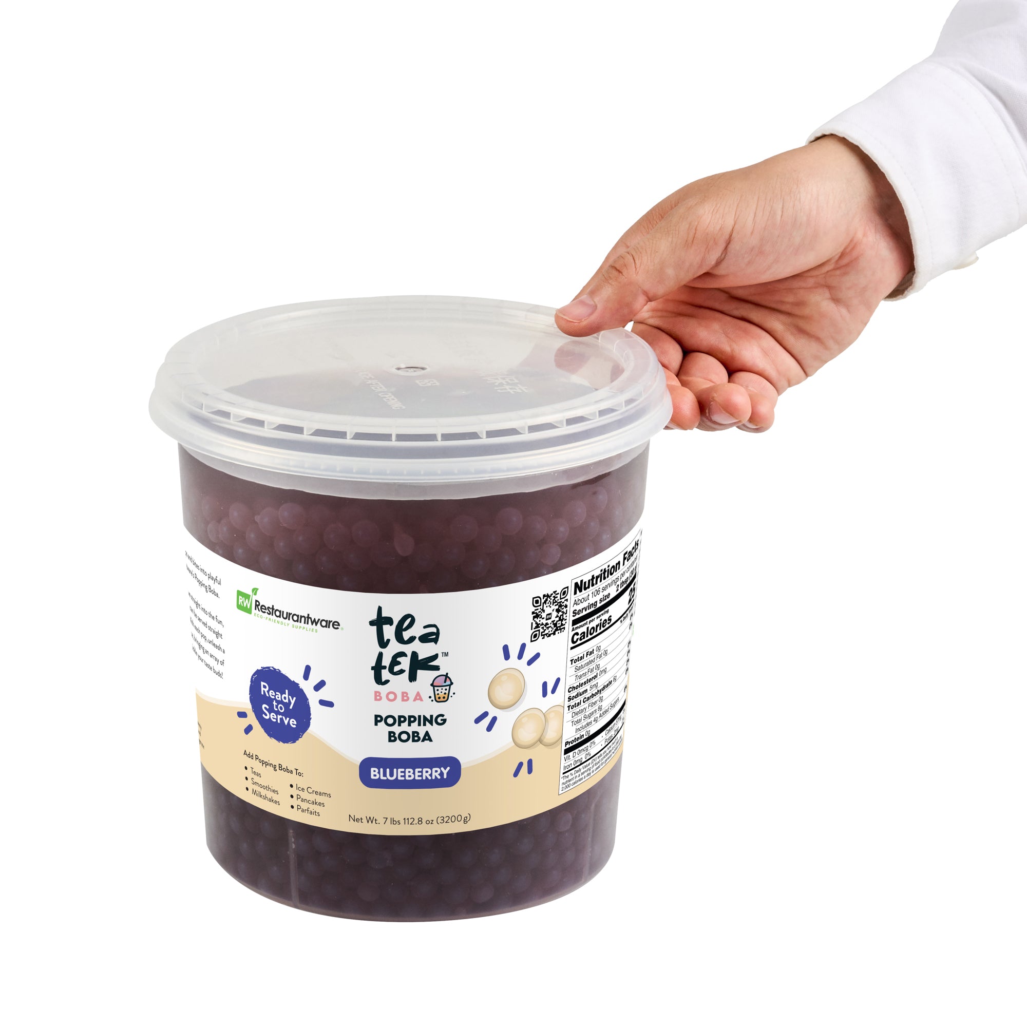 Enhance your menu with vibrant and flavorful toppings. Tea Tek Blueberry Popping Boba offers a burst of blueberry flavor that instantly elevates beverages and desserts, delighting customers with every bite. This blueberry popping boba is ready-to-use, saving valuable preparation time and ensuring quick service during peak hours. Packaged in a hassle-free resealable jar, it maintains freshness, extending the shelf life for efficient inventory management. Each serving contains only 25 calories, perfect for health-conscious offerings, while the vegan and dairy-free composition caters to diverse dietary needs. With dimensions of 7.19 inches in length, this edible blue boba can transform any dish into a creative and trendy masterpiece. Add these bubble tea pearls to drinks or as a topping for frozen treats to diversify your offerings and captivate guests. Each order includes 1 Tea Tek Blueberry Popping Boba.