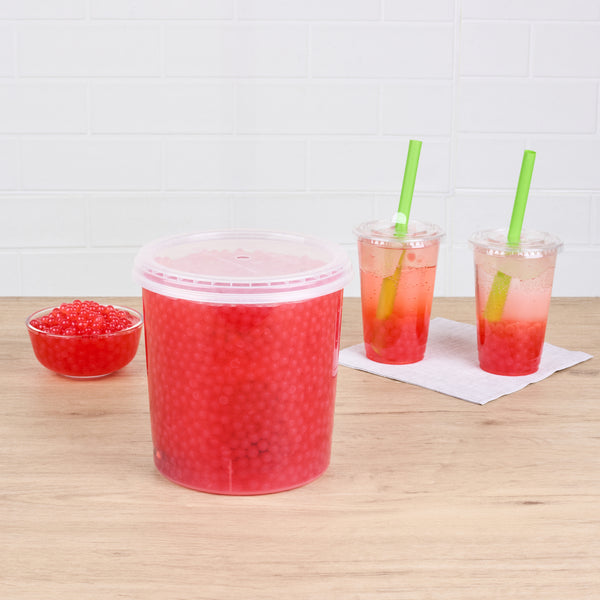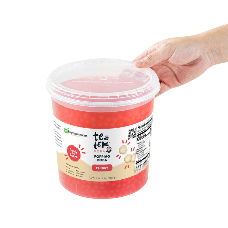 Elevate your menu offerings with versatile popping boba. Tea Tek Resealable Popping Boba infuses beverages and desserts with a dynamic burst of cherry flavor, enhancing your creations with a sweet, fruity taste that captivates a broad customer base. Packaged in a resealable jar, this popping boba ensures freshness and extends shelf life, an essential feature for high-volume establishments aiming to minimize waste and maintain quality. At 7.19 inches in width, this vegan and dairy-free treat caters to diverse dietary preferences, broadening your appeal and accommodating more customers. The rich cherry popping pearls transform bubble tea and desserts into vibrant, eye-catching delights, making them irresistible to patrons seeking an interactive dining experience. With the added benefit of being a ready-to-use product, it streamlines preparation, allowing staff to efficiently add bubble tea pearls to any dish or drink. Each order includes 1 Tea Tek Resealable Popping Boba.