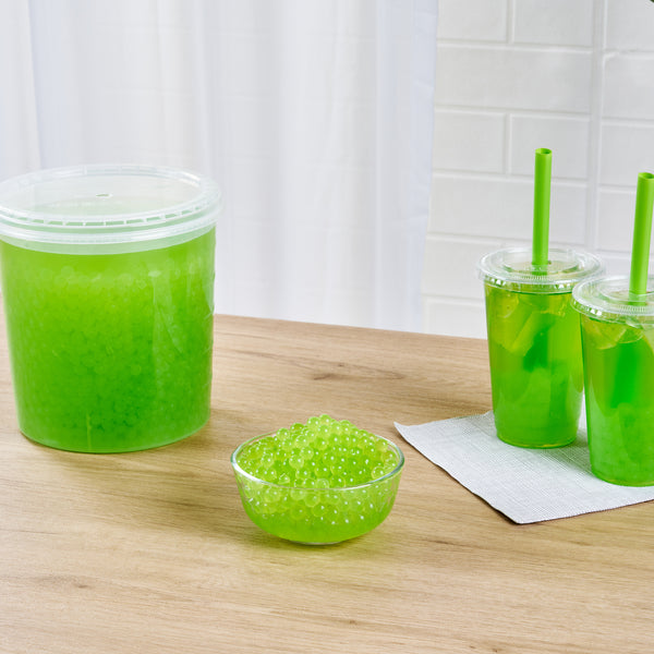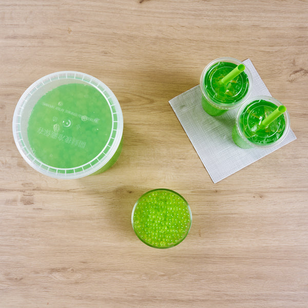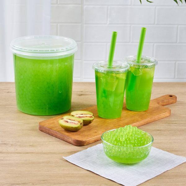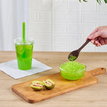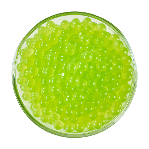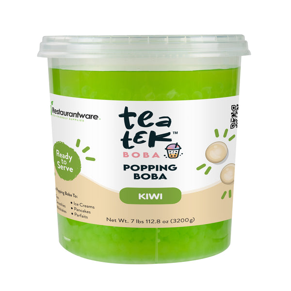 Enhance your culinary creations with vibrant kiwi popping pearls. Tea Tek Kiwi Popping Pearls, encased in a convenient resealable jar, maintain freshness and extend shelf life, ensuring your fruit popping pearls are always ready to elevate desserts and beverages. With their vegan and dairy-free composition, these pearls cater to diverse dietary preferences, making them a versatile ingredient in any kitchen. The striking green color of these kiwi cocktail pearls adds a visual appeal to your drinks or desserts, making them irresistible and trendy. Measuring 7.19 inches in length, the popping pearls are crafted from edible materials, providing a delightful burst of flavor with every bite. Transform your menu offerings with these creative pearls that are both delicious and low-calorie, containing only 25 calories per serving. Each order includes 1 Tea Tek Kiwi Popping Pearls.