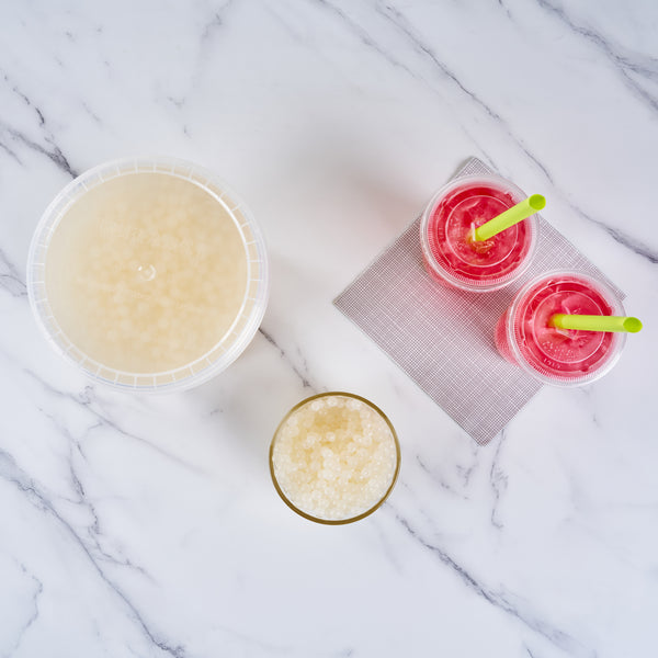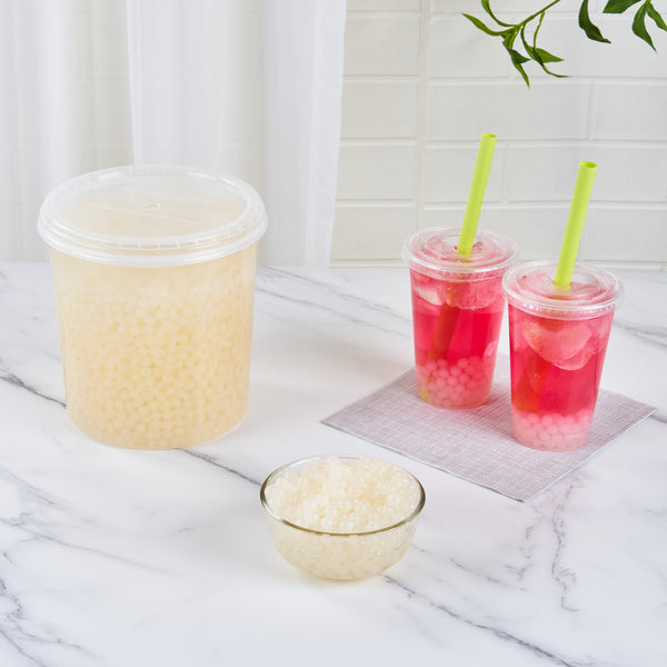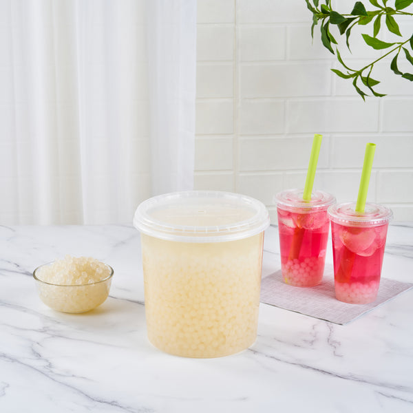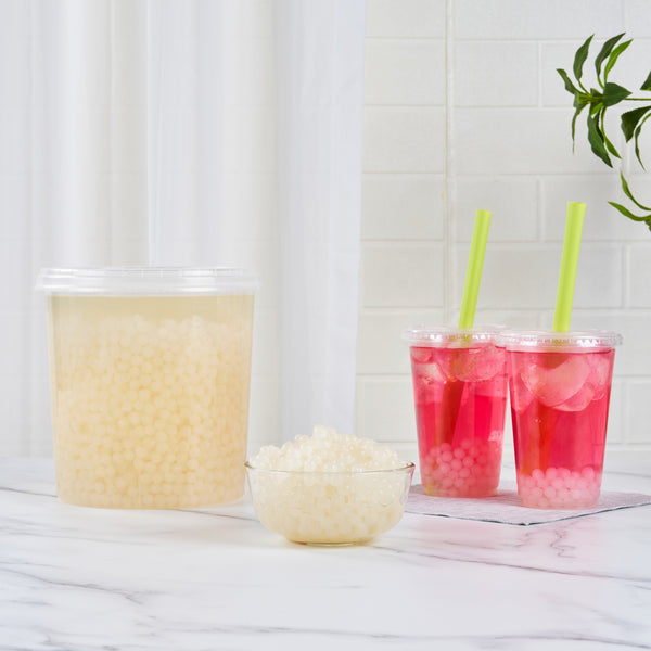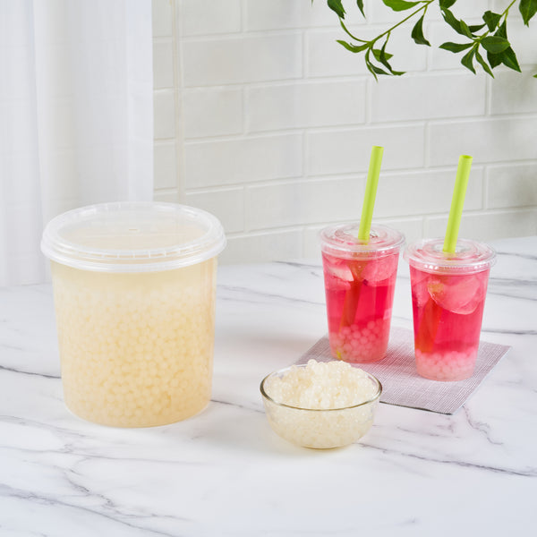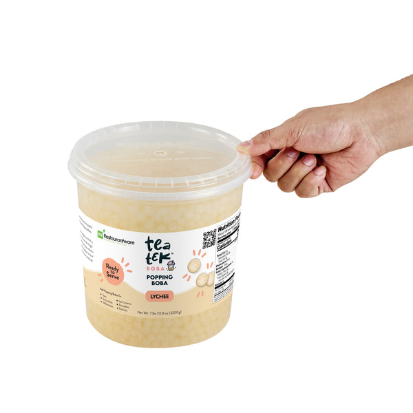Enhance your beverage menu with irresistible popping boba pearls. Tea Tek Resealable Popping Boba Pearls feature a 7-pound bulk container, ensuring ample supply for high-volume beverage service and reducing the need for frequent reordering. Infused with exotic lychee flavor, these bubble tea pearls add a sweet touch to any drink, elevating the overall drinking experience. Ready-to-use, they simplify preparation, allowing staff to efficiently serve drinks without additional processing. Housed in a resealable jar, these pearls maintain freshness and increase shelf life, making them perfect for bubble tea shops, bars, and cafes. At just 25 calories per serving, they offer a guilt-free indulgence, while their vegan and dairy-free composition accommodates diverse dietary needs. With dimensions of 7.2 inches by 7.2 inches by 7.9 inches, these dessert topping pearls seamlessly integrate into any kitchen setup. Each order includes 1 Tea Tek Resealable Popping Boba Pearls.