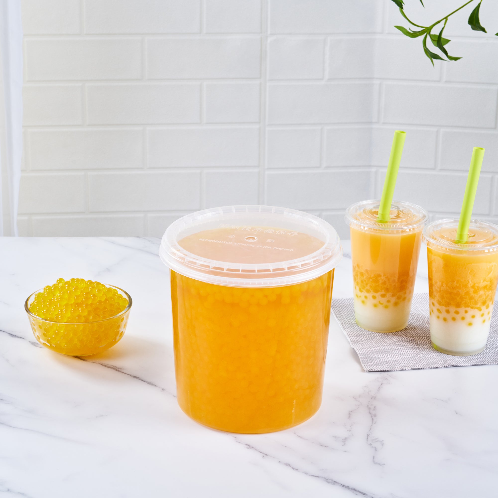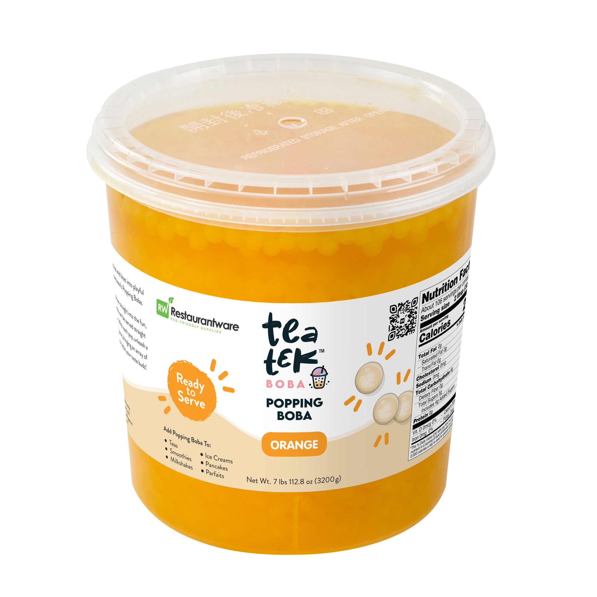 Elevate your menu with vibrant and flavorful popping boba. Tea Tek Yellow Popping Boba features a resealable jar that maintains freshness and extends shelf life, enhancing operational efficiency by reducing waste and reordering frequency. These popping pearls for cocktails and desserts add a creative flair, transforming your drinks and desserts into eye-catching masterpieces that captivate diners. With a vegan and dairy-free formula, these popping boba pearls cater to diverse dietary preferences, making them a versatile choice for bubble tea shops, frozen yogurt stores, and bars. Measuring 7.19 inches in length, these edible pearls are ready-to-use, eliminating preparation time and allowing quick incorporation into your offerings. Infuse your beverages and desserts with the rich flavor of these bubble tea pearls to delight customers and encourage repeat business. Each order includes 1 Tea Tek Yellow Popping Boba.