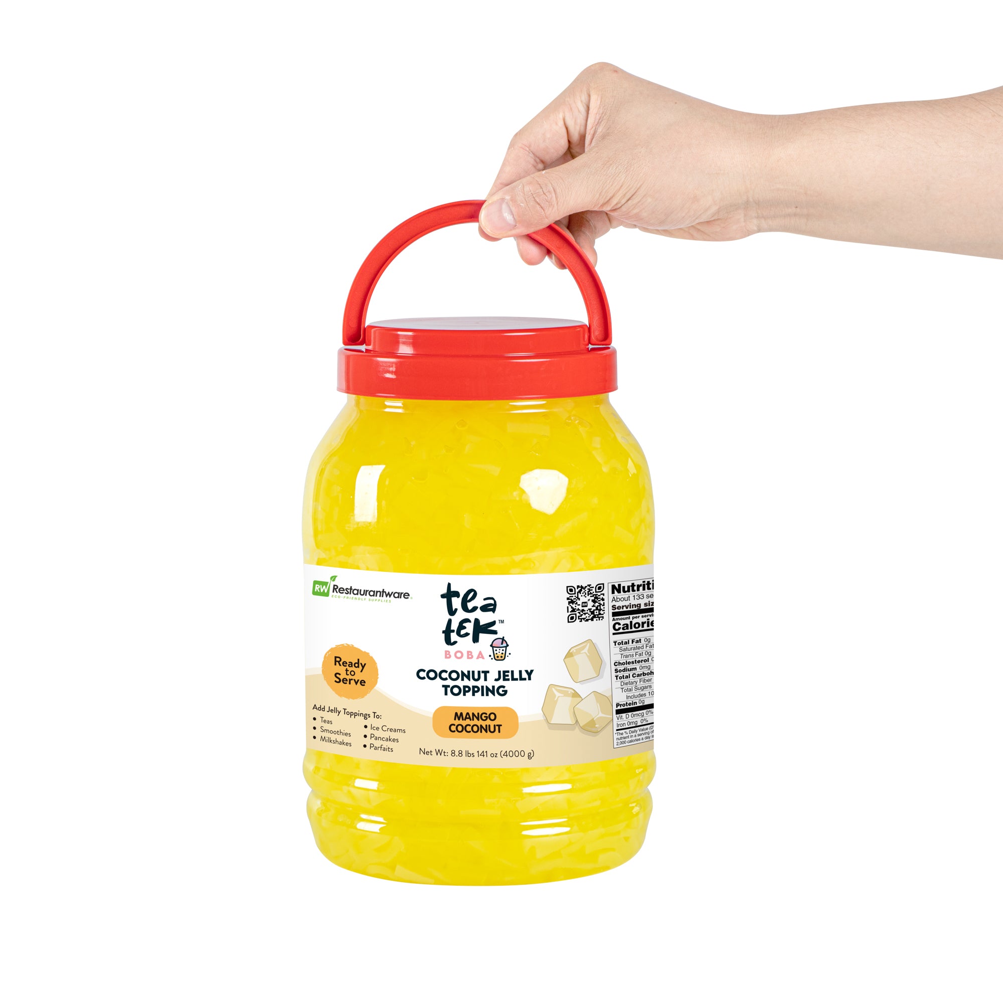 Enhance your menu with a tropical twist. Tea Tek No Cooking Required Jelly for Bubble Tea brings a refreshing mango and coconut flavor combination that elevates any dessert or beverage, delivering an unforgettable taste experience. This jelly for bubble tea is available in 8.8-pound bulk packaging, perfect for high-volume establishments seeking to maintain a steady supply while minimizing reordering efforts. With its versatile application, this coconut jelly for drinks can be used across various menu items, from frozen yogurt and ice cream toppings to an exciting addition in bubble tea and smoothies, offering unparalleled menu flexibility. The no-cooking-required feature significantly reduces preparation time, allowing for efficient service during busy hours. Additionally, the tropical mango flavor jelly, with its authentic fruit pieces, enhances the texture and visual appeal of your offerings. Each order includes 1 Tea Tek No Cooking Required Jelly for Bubble Tea.