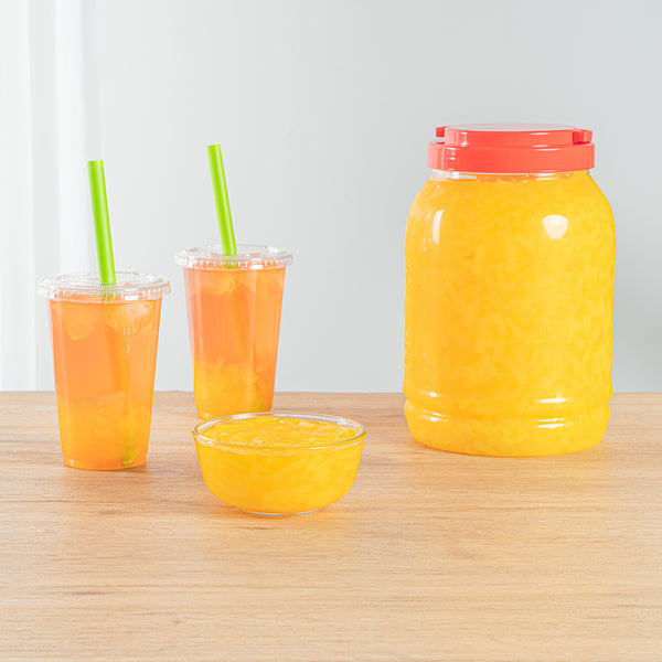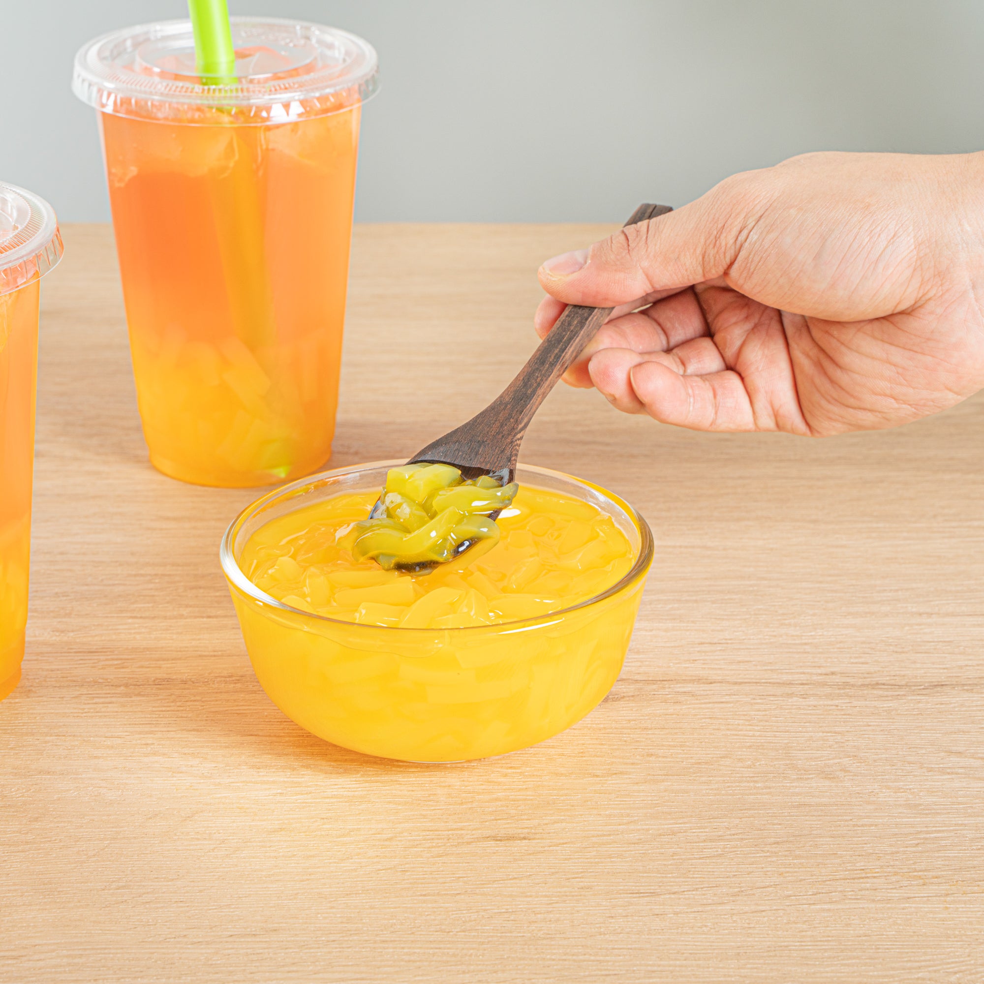Enhance your menu with the exotic allure of coconut jelly toppings. Tea Tek Lychee Flavor Coconut Jelly offers a no-cooking-required formulation that saves prep time in busy foodservice establishments, making it an efficient addition to any kitchen. Infused with lychee flavors, this bubble tea jelly elevates the taste and appeal of boba teas, slushies, and desserts, delighting customers with a unique twist. Measuring 8.7 inches in length and width, this tropical jelly topping is packaged in a bulk container, ensuring a consistent supply and simplifying inventory management for high-volume businesses. Made from edible materials, it is low in cholesterol, supporting healthier menu options without compromising on taste. Its versatile application across various dishes allows chefs to expand their menu effortlessly. Upgrade your offerings with this vibrant, orange-colored, flavor-packed jelly. Each order includes 1 Tea Tek Lychee Flavor Coconut Jelly.