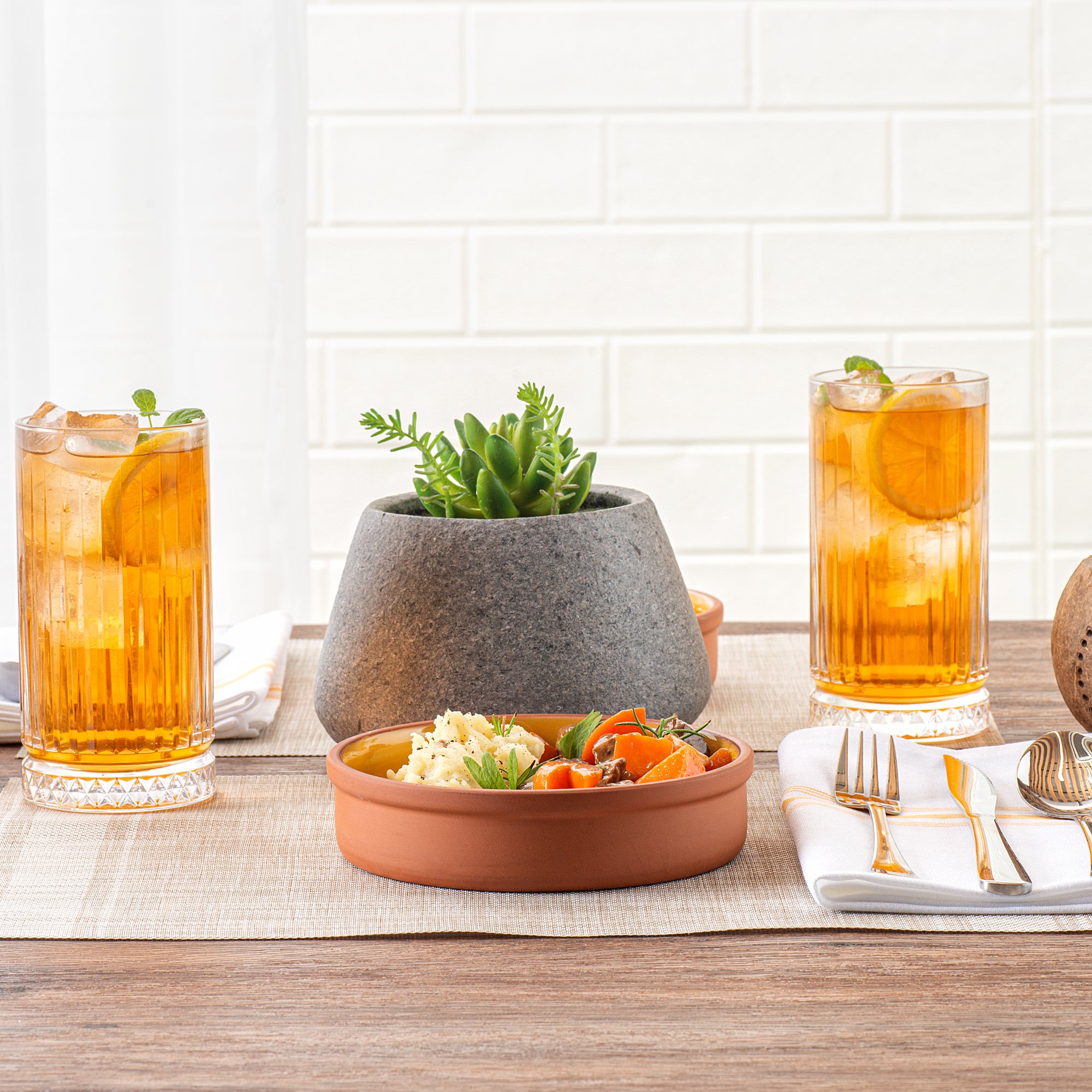 Enhance your dish presentation with vibrant tableware. The Terra Tek Heat-Retentive Cazuela Bowl features a yellow glazed interior, elevating the visual appeal of each meal served. This rustic terracotta bowl is designed with a dishwashable finish, allowing foodservice professionals to save time on post-meal cleaning tasks. Measuring 6.3 inches in diameter, it offers a generous 15-ounce capacity, making it ideal for serving individual portions of soups, stews, or casseroles. The oven and microwave-safe properties of this Spanish tapas bowl provide versatile cooking options, accommodating various kitchen operations with ease. Crafted from premium terracotta, it withstands the rigors of daily use in busy foodservice environments, ensuring long-lasting durability. Whether for tapas restaurants or casual dining establishments, this cazuela bowl keeps dishes warm and enticing, enhancing customer satisfaction. Each order includes 2 Terra Tek Heat-Retentive Cazuela Bowls.